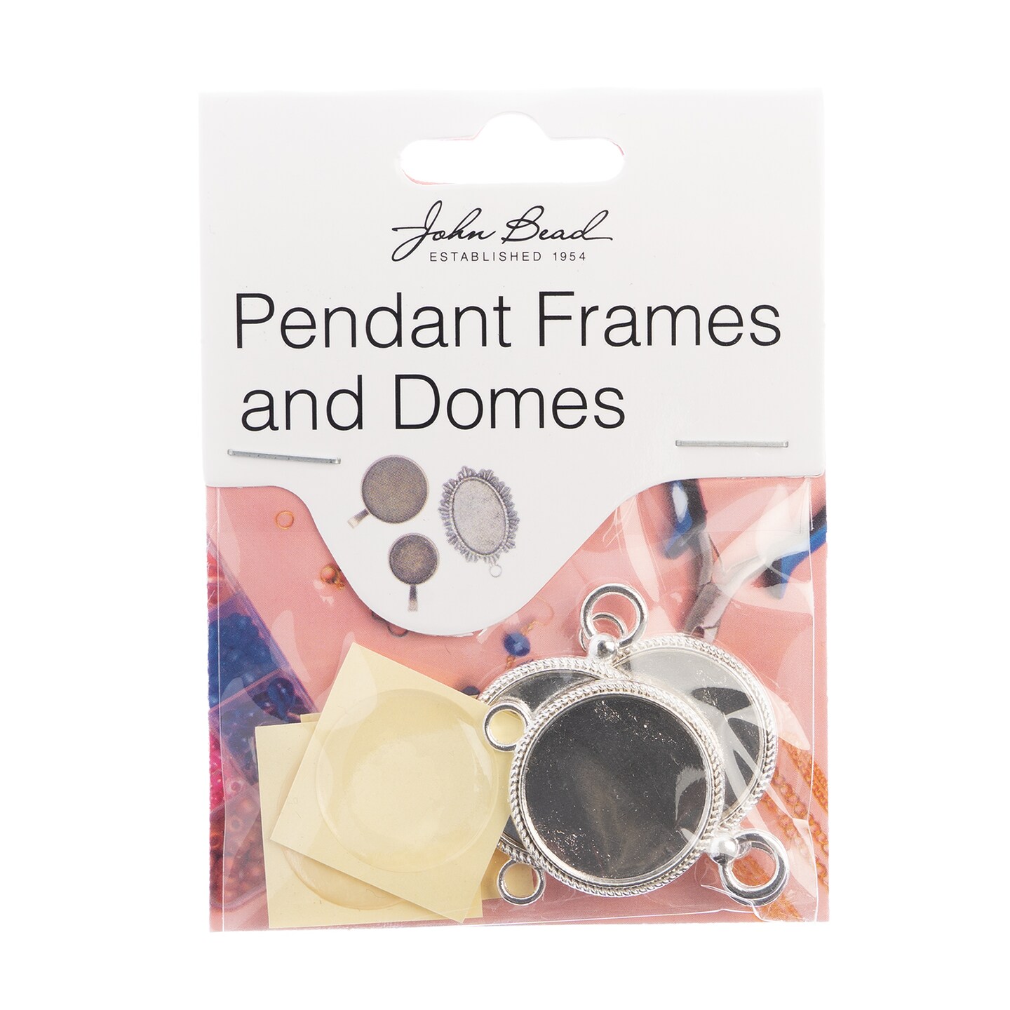 John Bead Must Have Findings Silver Round Pendant Frame Fob Style, 3pcs