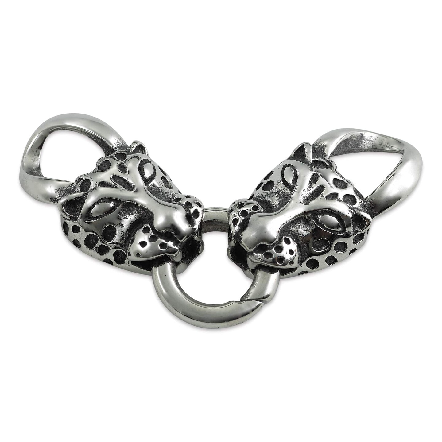 John Bead Stainless Steel Antique Silver Clasp - Leopard Head, 32 x 17 mm
