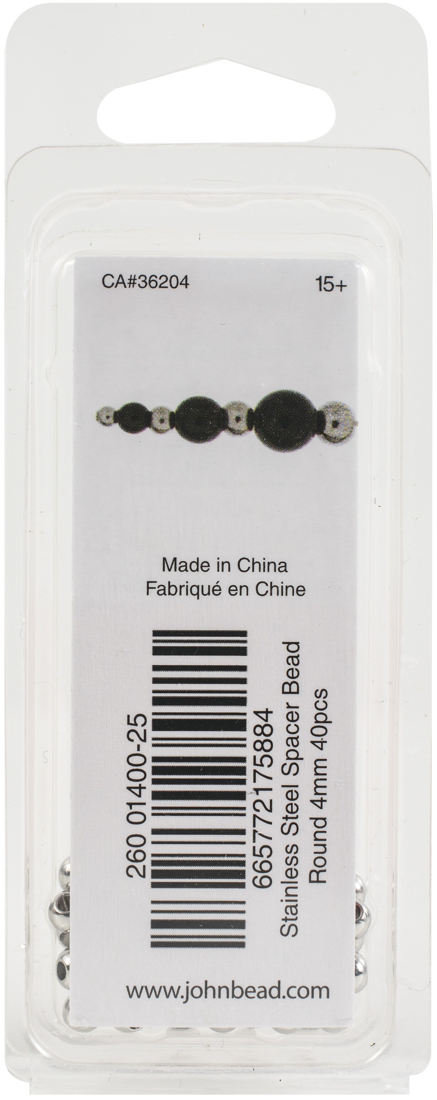 John Bead Stainless Steel Round Spacer Bead 40/Pkg-4mm