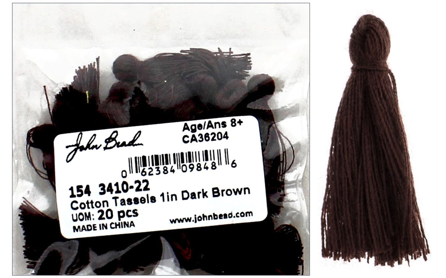 John Bead Tassel 1" Cotton 20pc Dark Brown