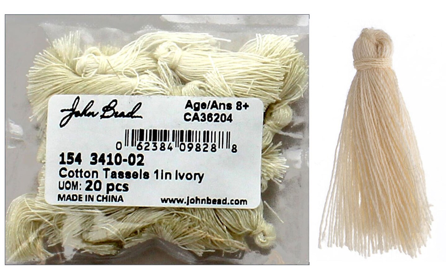 John Bead Tassel 1" Cotton 20pc Ivory