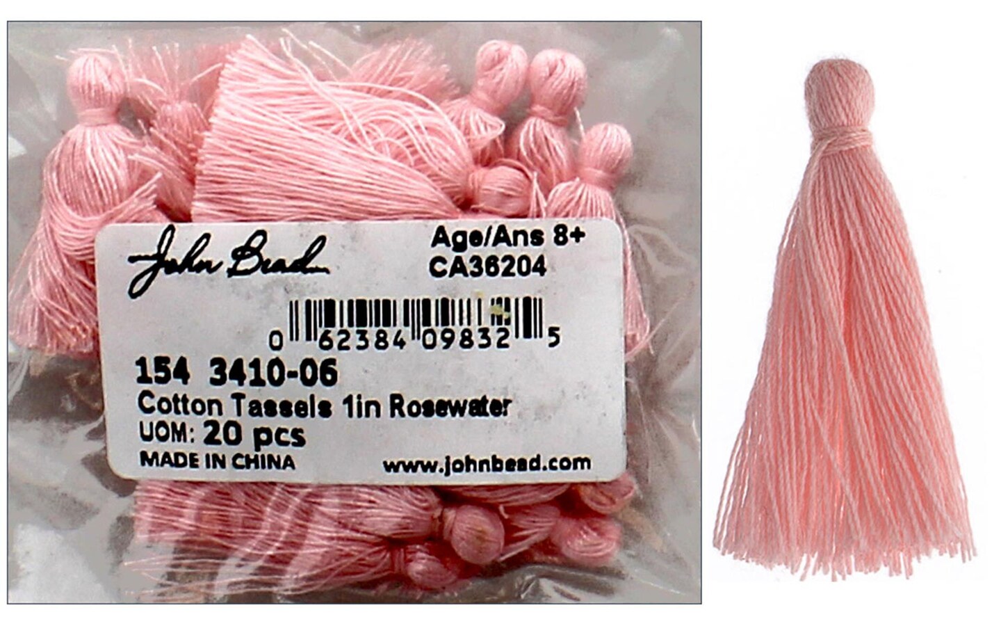 John Bead Tassel 1" Cotton 20pc Rosewater