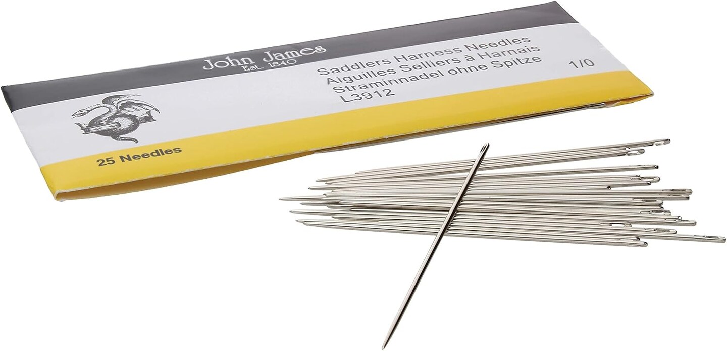 John James Saddlers Harness Needles, Size 18 1/0, 57.5mm in Length and 1.09mm in Diameter, Pack of 25, Large, Rounded Point, Use for All Hand Stitched Leather Craft Work and Harness/Saddle Repairs