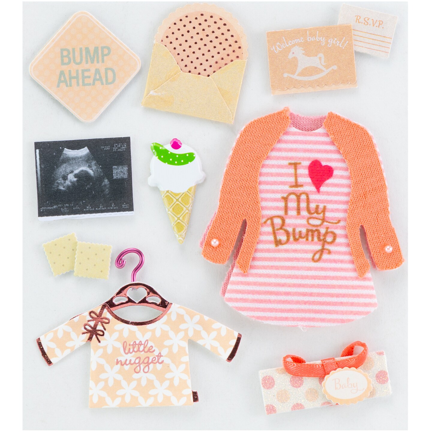 Jolee's Boutique Dimensional Stickers - Baby Girl Pregnancy, 9pcs
