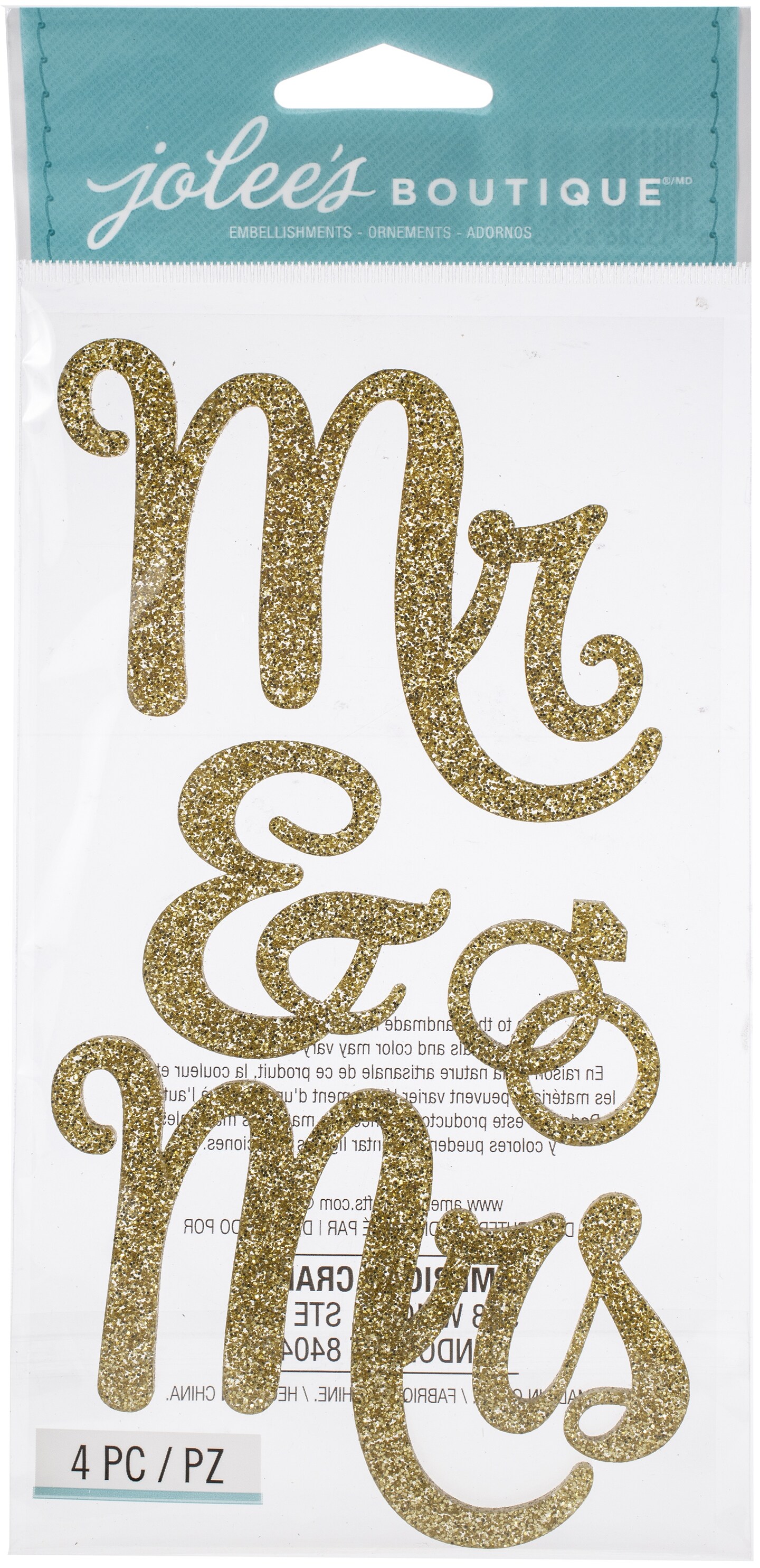 Jolee's Boutique Themed Embellishments 4/Pkg-Mr. & Mrs.
