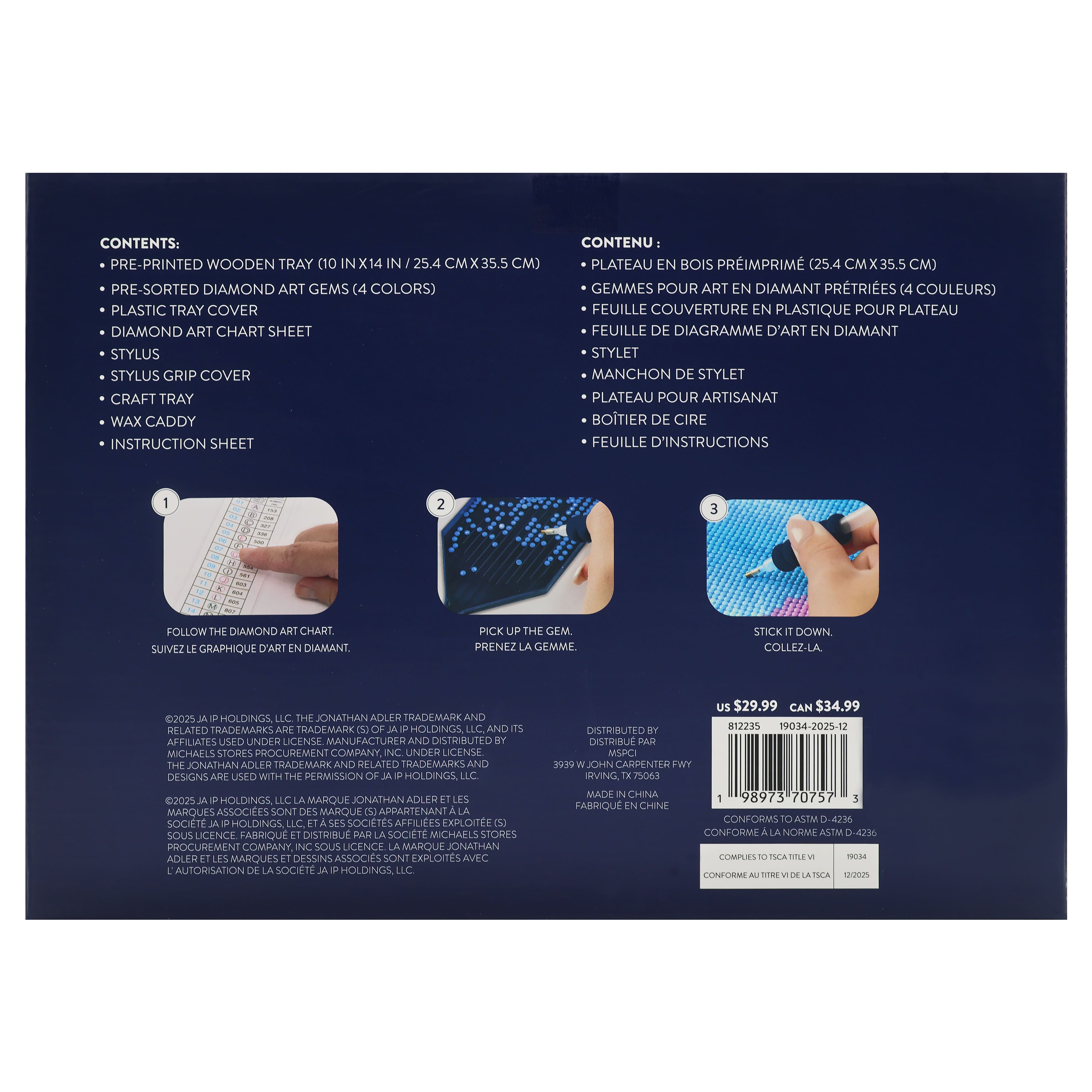 Jonathan Adler x Michaels 10" x 14" Blue Lines Diamond Art Tray Kit