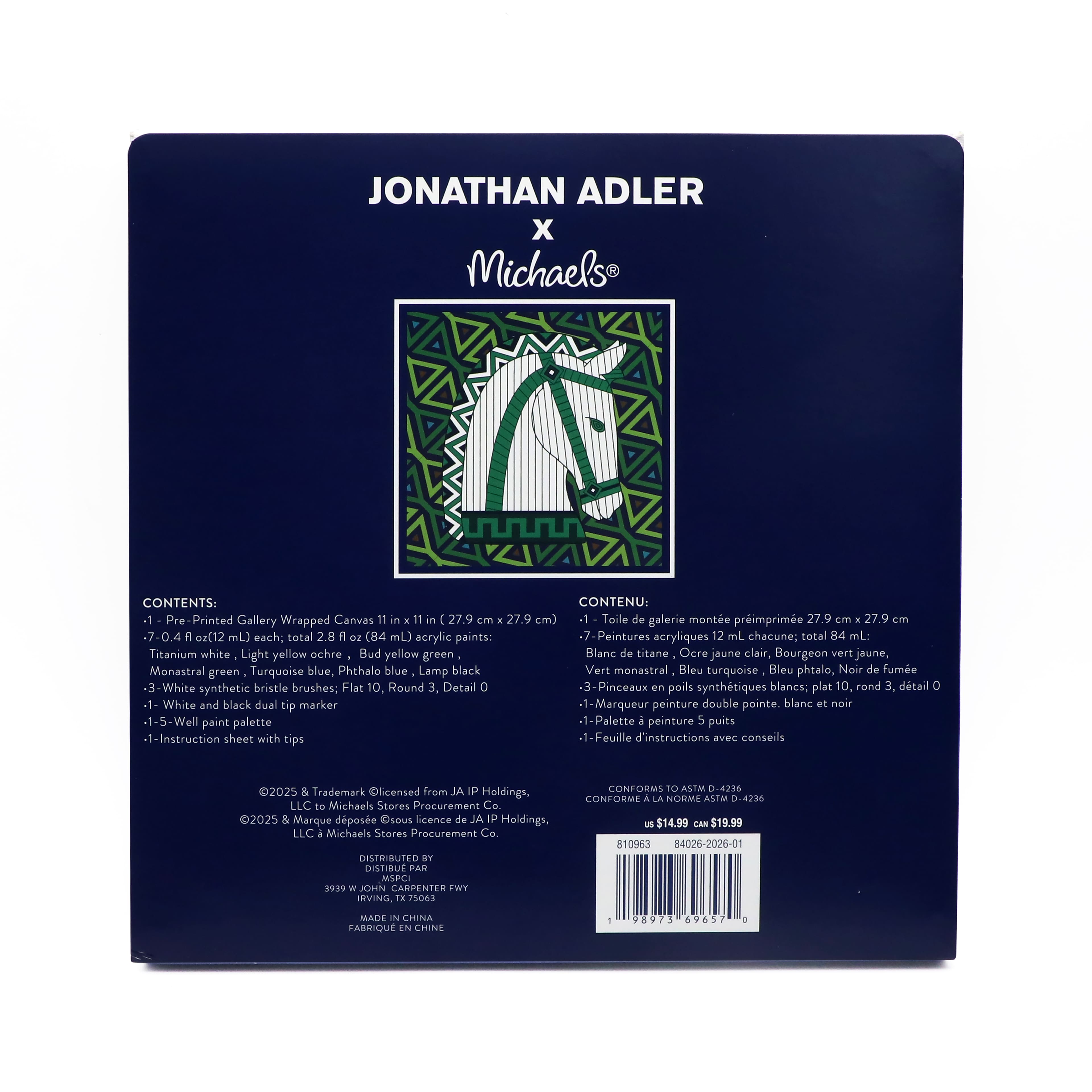 Jonathan Adler x Michaels 11" x 11" Luxembourg Horse Canvas Painting Kit
