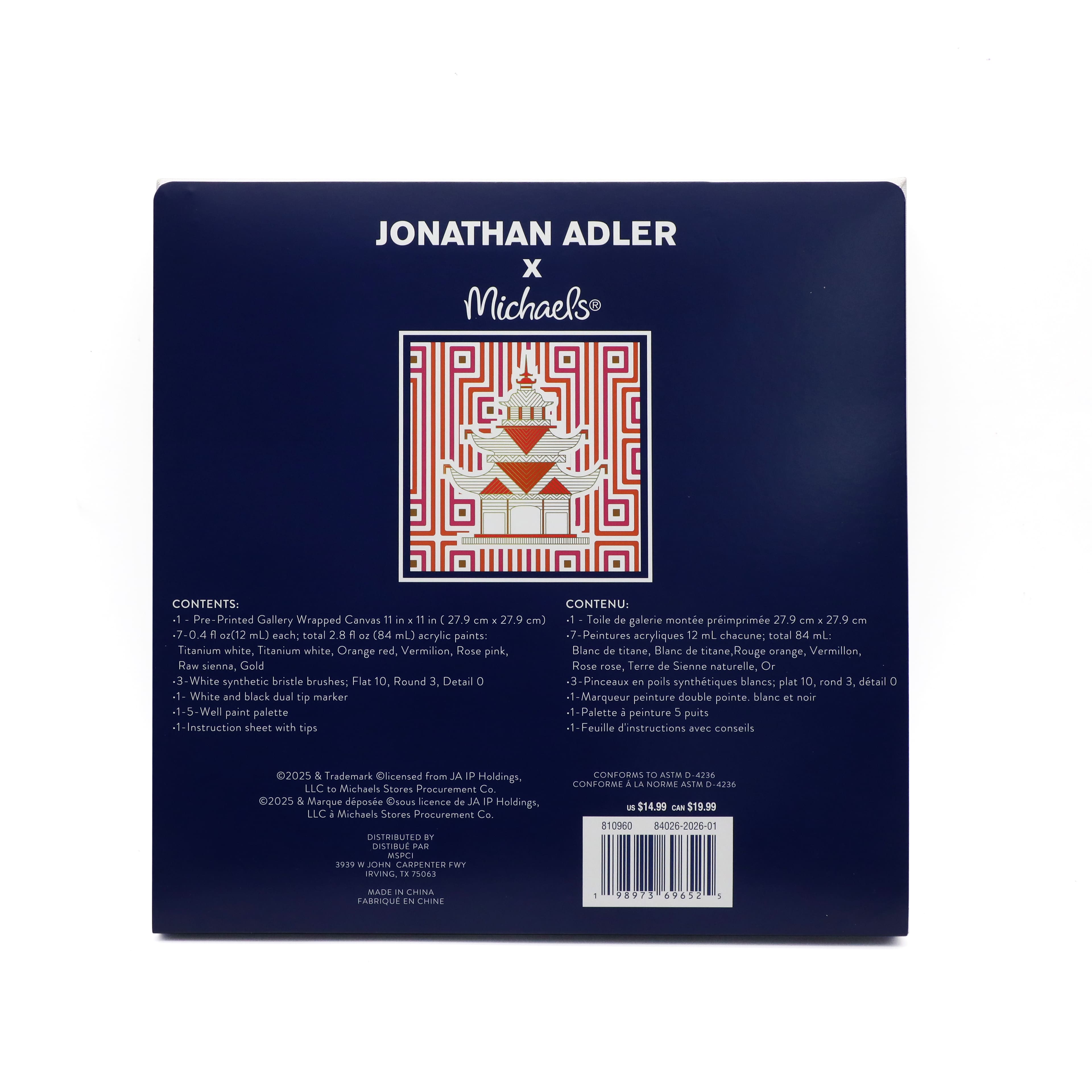Jonathan Adler x Michaels 11" x 11" Luxembourg Pagoda Canvas Painting Kit