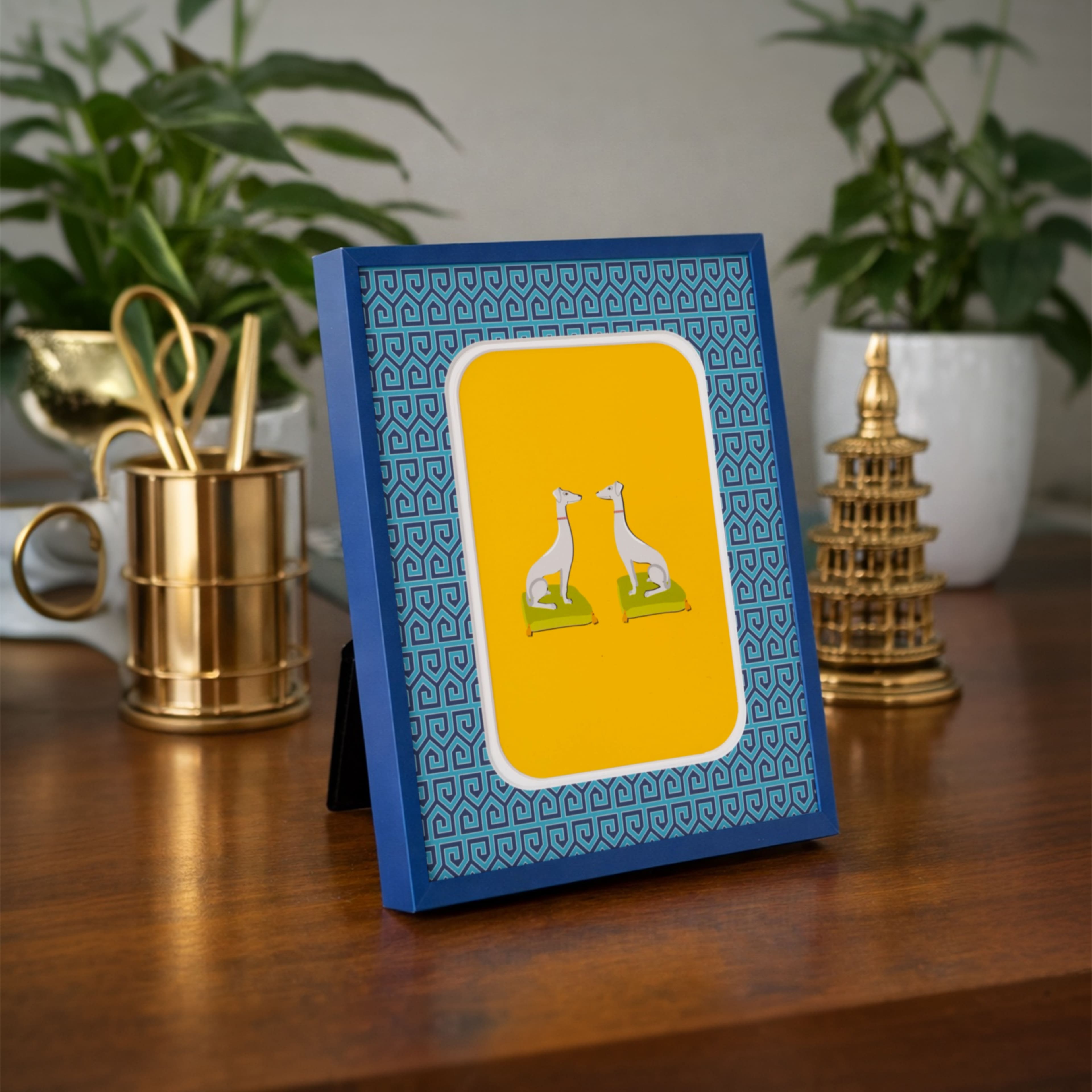 Jonathan Adler x Michaels 4" x 6" Blue & Teal Greek Key Matted Metal Tabletop Frame