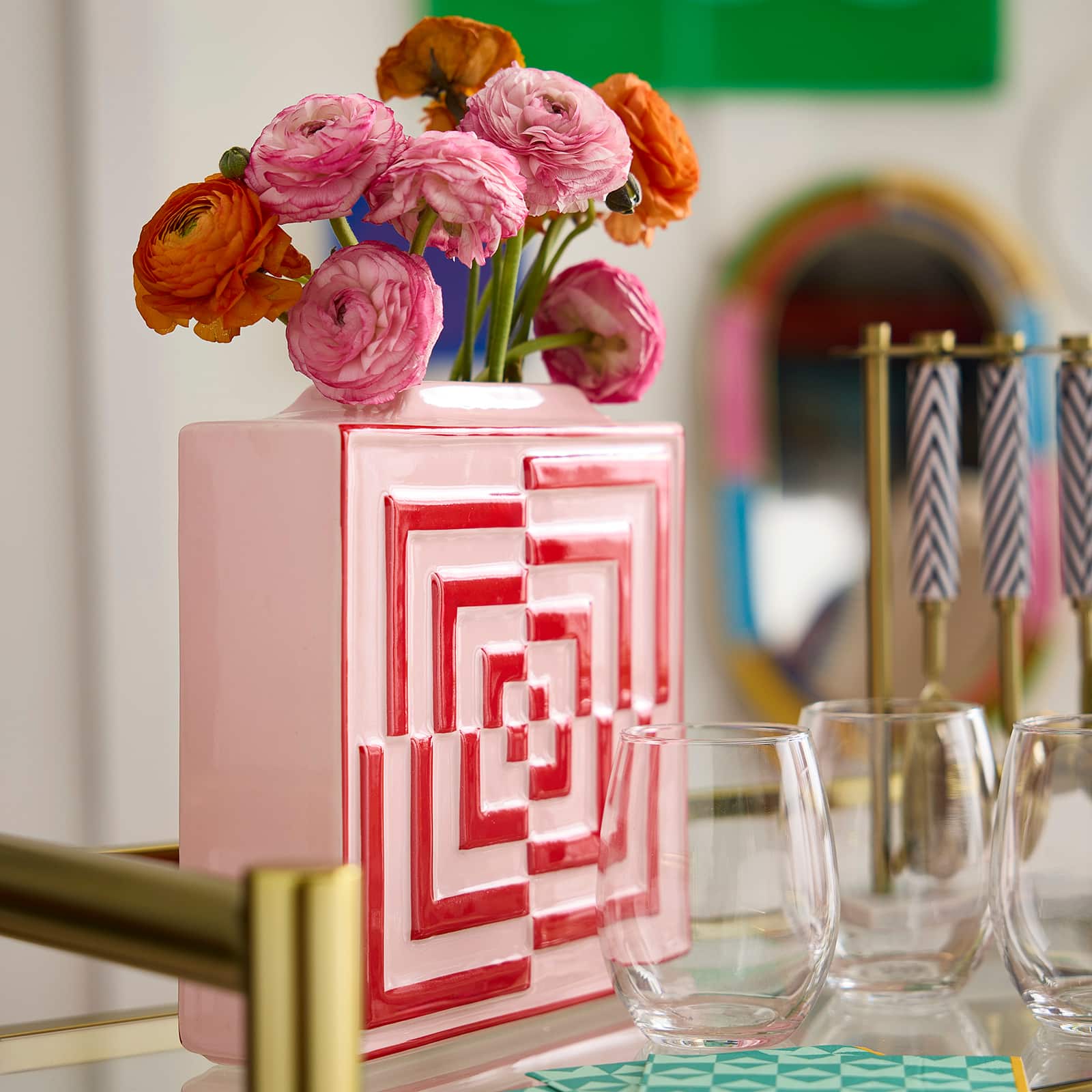 Jonathan Adler x Michaels 9.25" Pink & Red Geometric Illusion Square Tabletop Vase