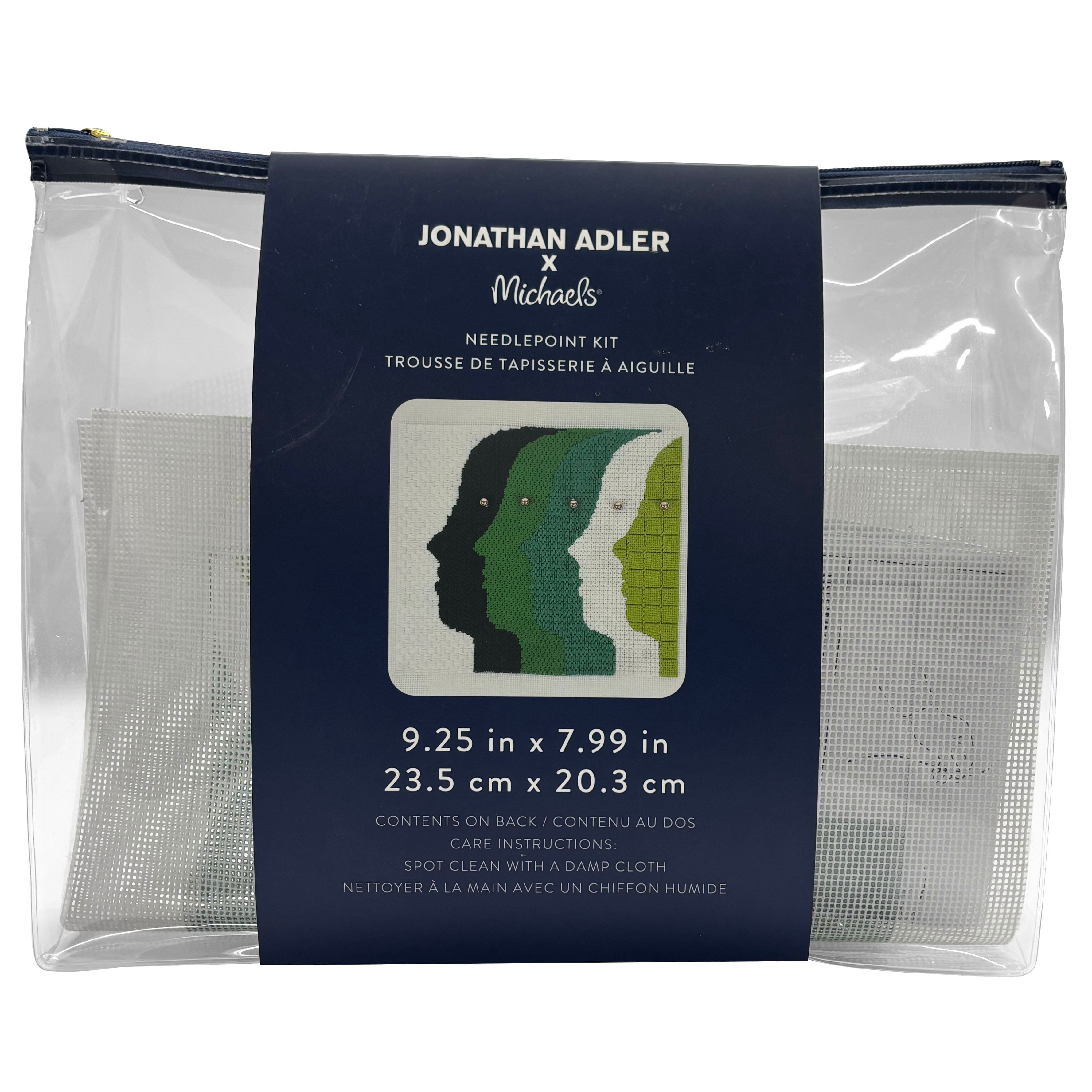 Jonathan Adler x Michaels Green & White Atlas Faces Needlepoint Kit