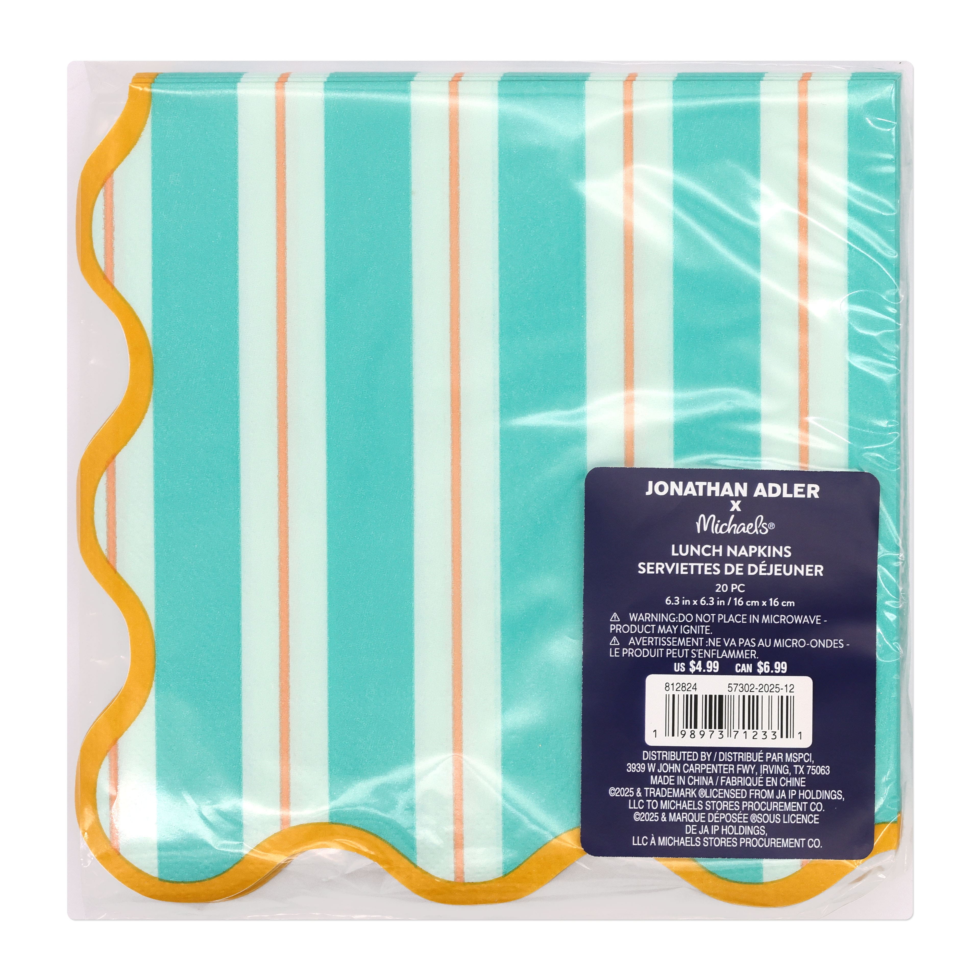 Jonathan Adler x Michaels Teal Stripe Lunch Napkins, 20ct.