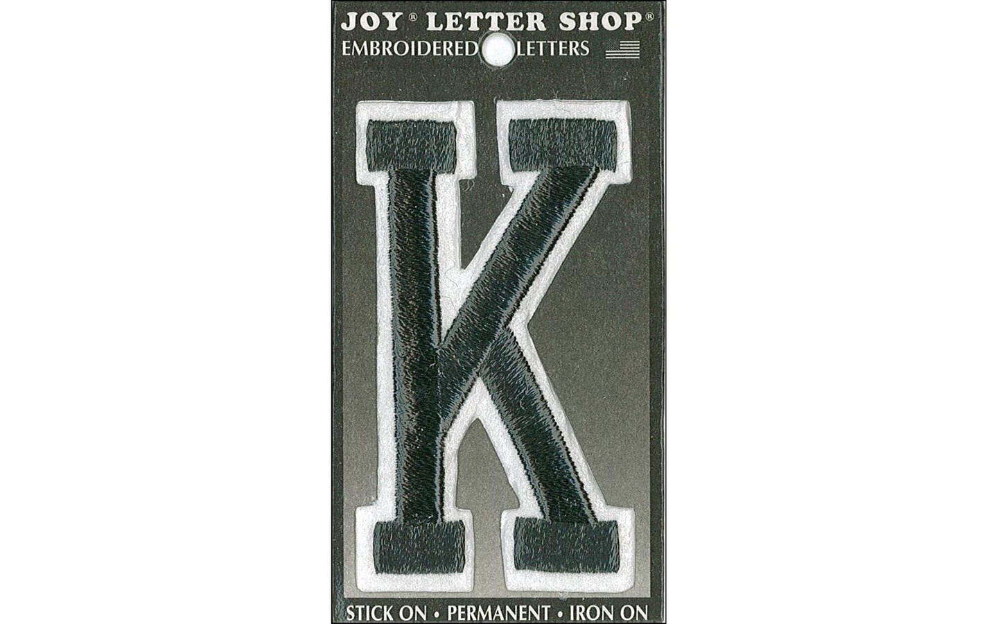 Joy Applique Letter Iron On Varsity 3" Black K