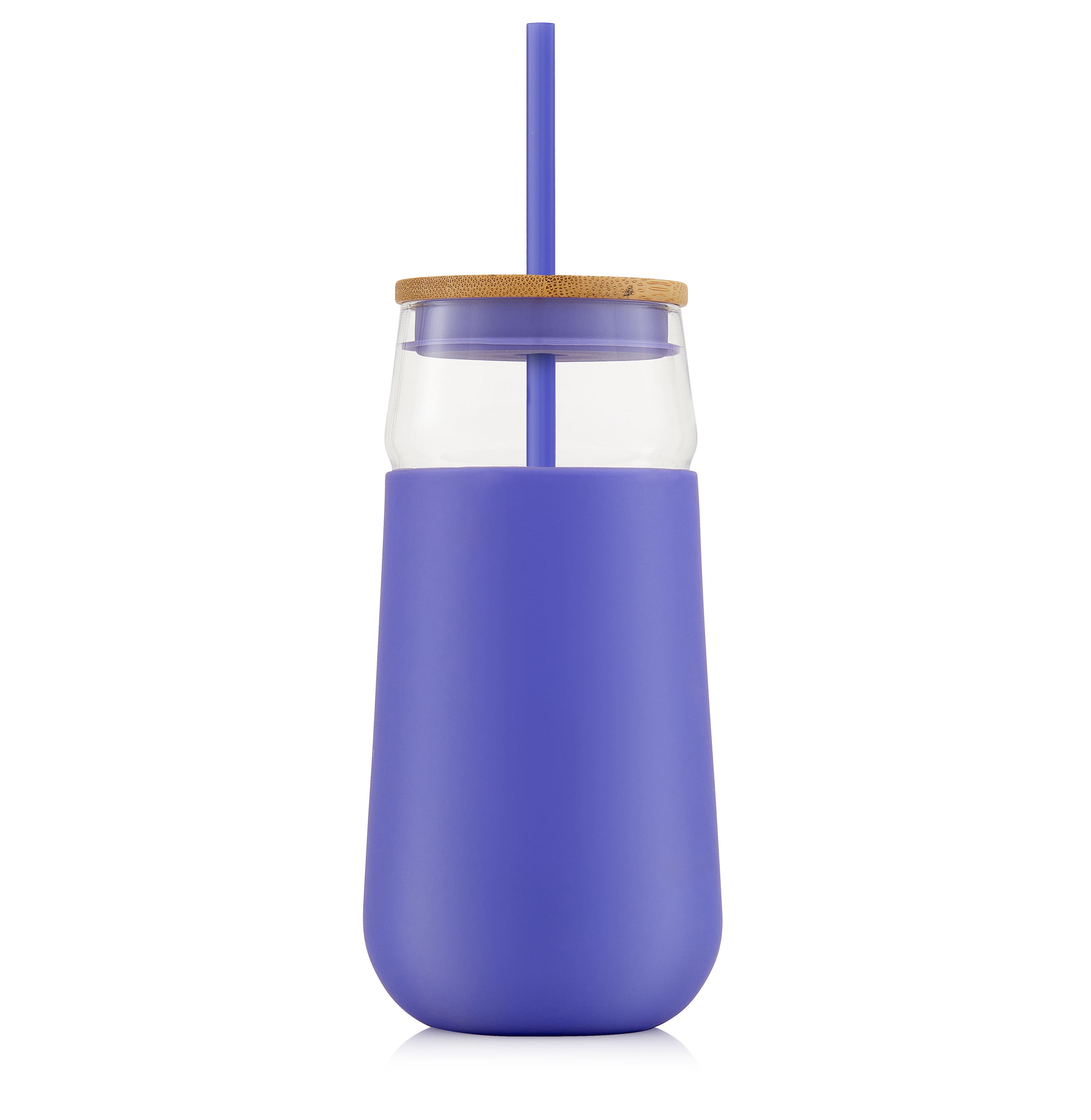 JoyJolt® 20oz. Glass Tumbler with Straws & Silicone Sleeve