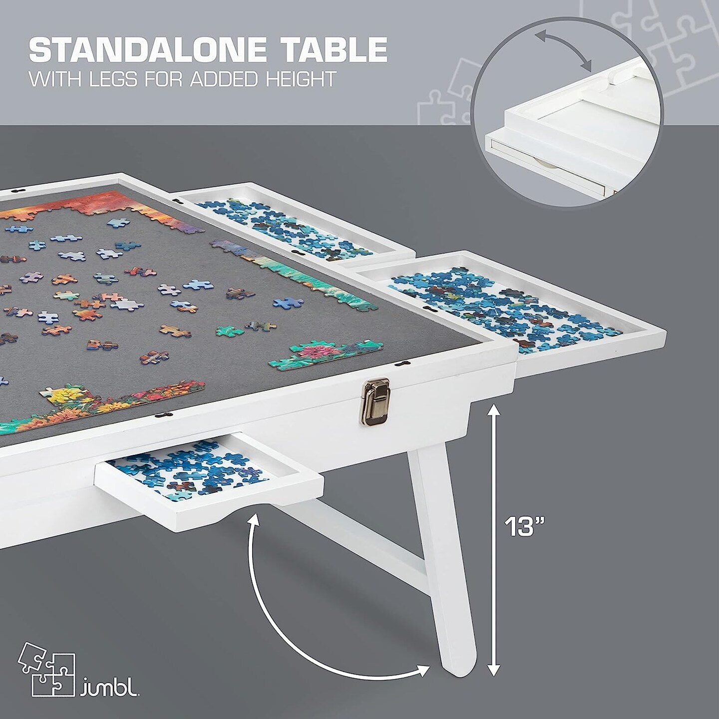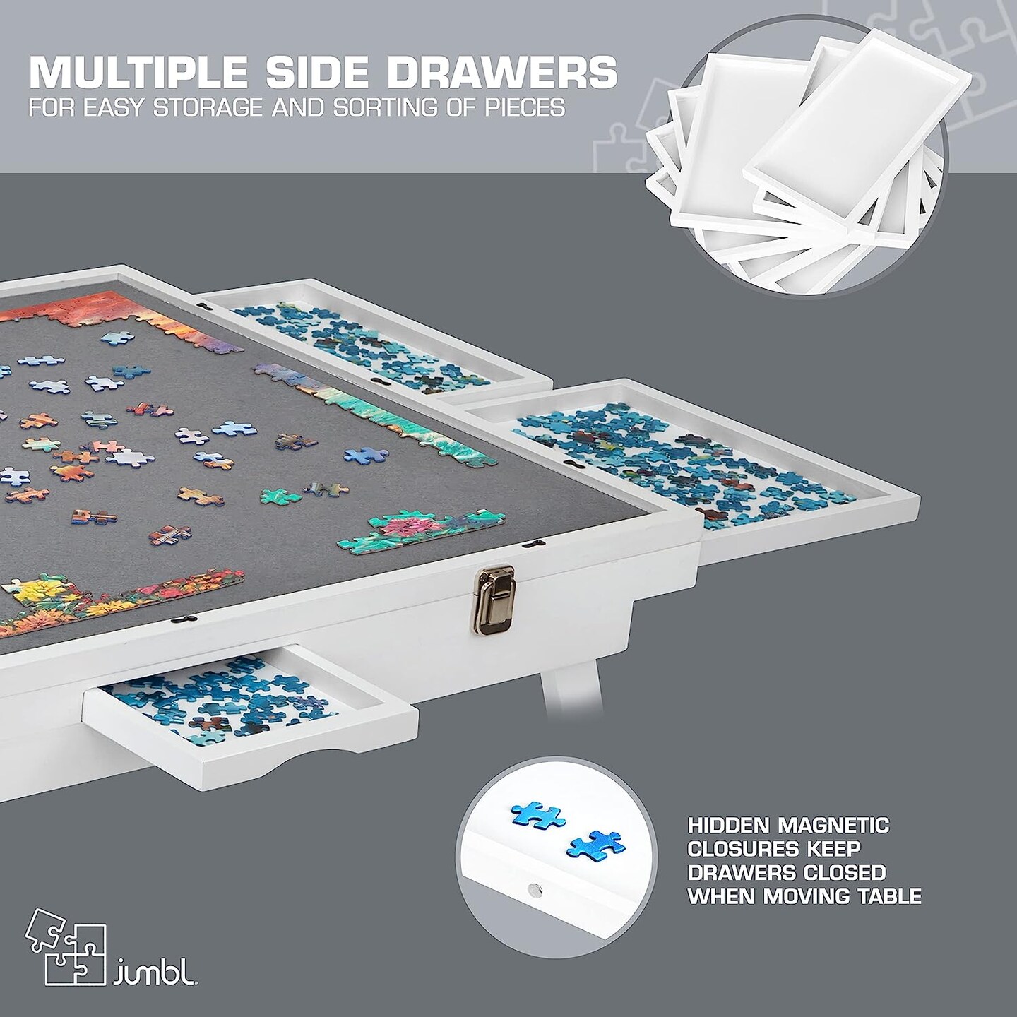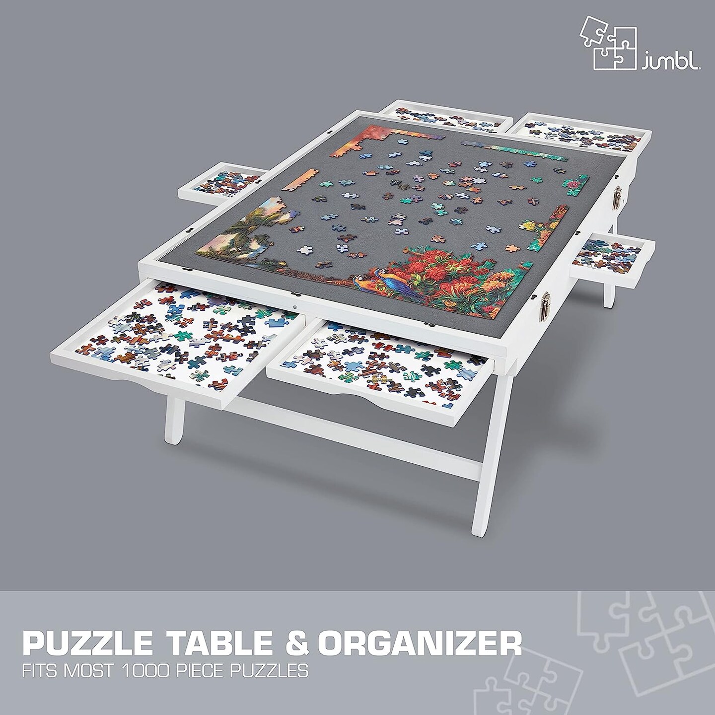Jumbl 1000 Piece Puzzle Board, 23” x 31” Wooden Jigsaw Puzzle Table Board w/Felt Surface & Storage Drawers