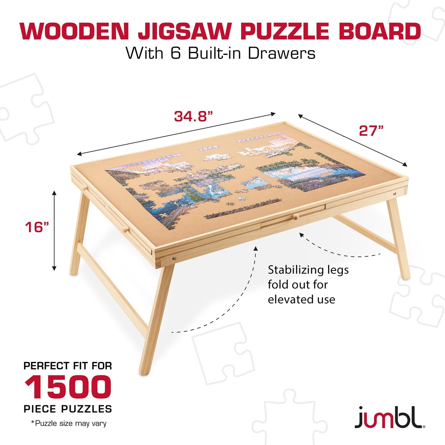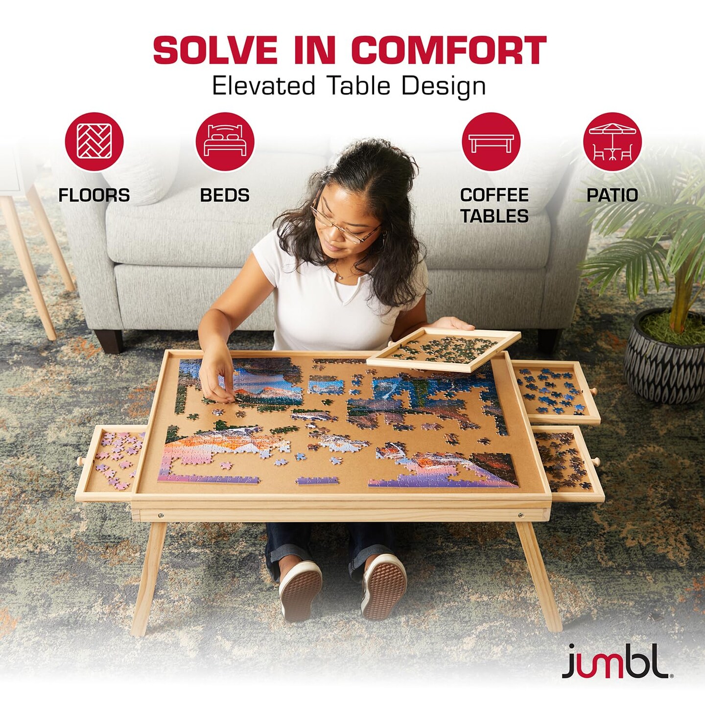 Jumbl Puzzle Board with Drawers, Foldable Legs & Cover - Wooden Jigsaw Puzzle Table