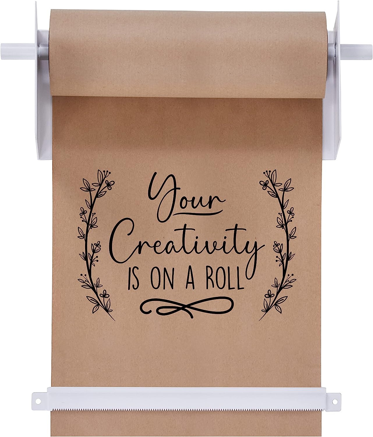 Jumbl Wall Mounted Kraft Paper Dispenser, Hanging Craft Paper Roll Holder with Paper Cutter (White)