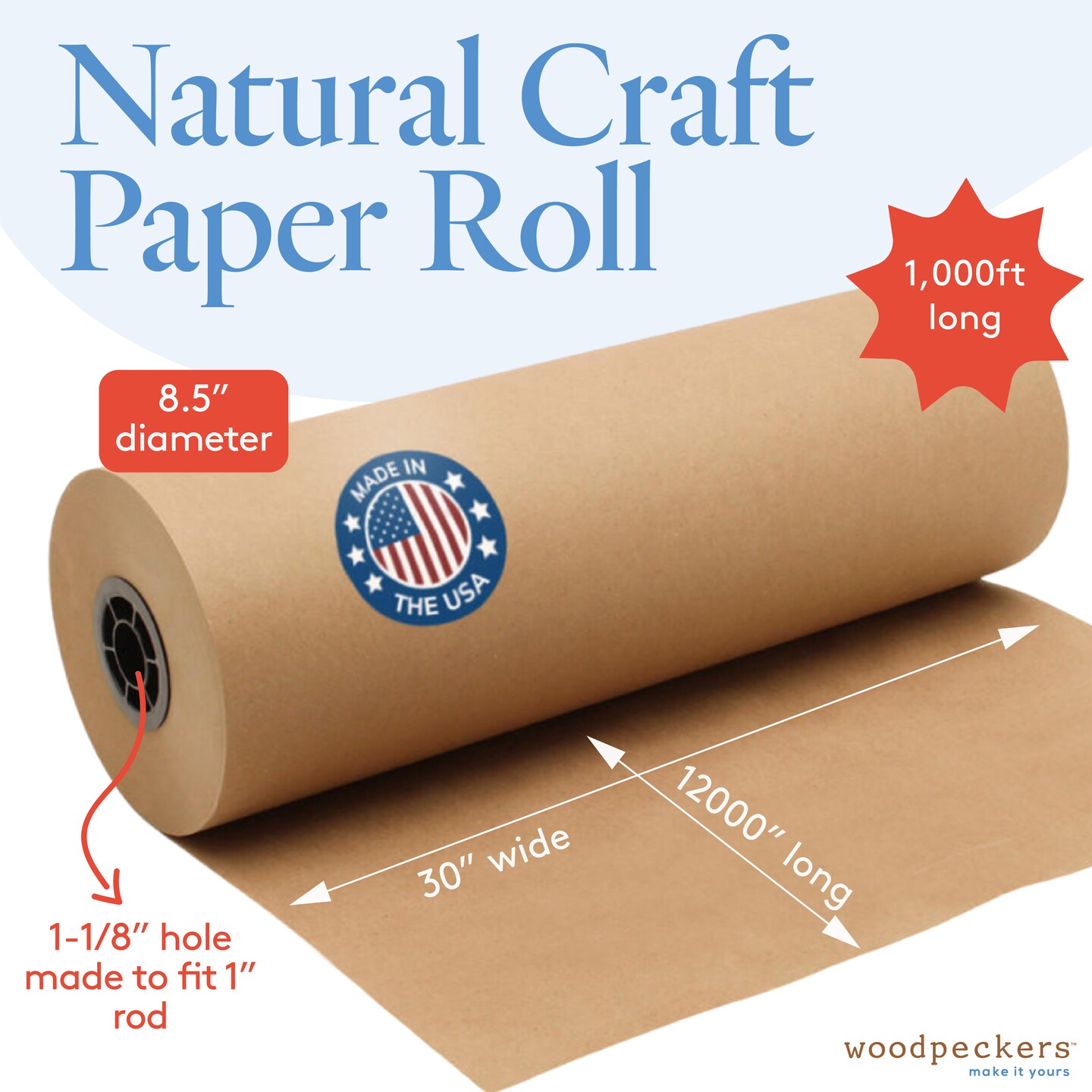 Jumbo Brown Craft Paper Roll, Multiple Sizes, for Gift Wrap| Woodpeckers