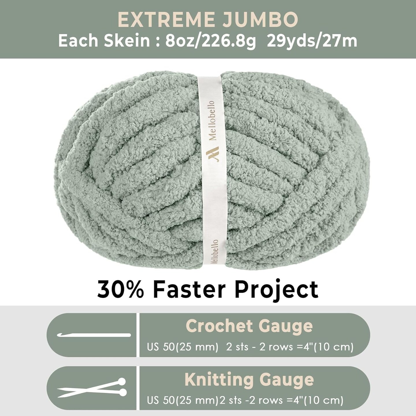 Jumbo Chunky Chenille Yarn – 8-Pack, 8 oz / 27 yds Each, Super Soft Bulky Yarn for Hand Knitting & Crocheting, Fluffy Thick Yarn for Blankets, Scarves, Home Decor – Sage Green