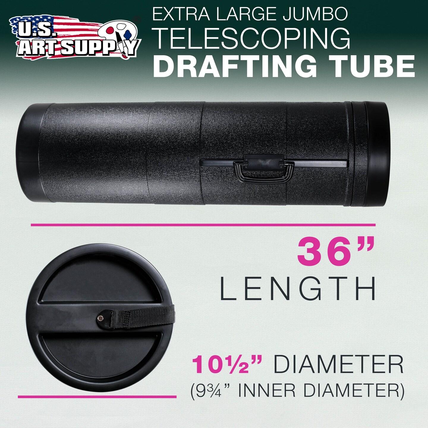 Jumbo Poster Tube - Telescoping Adjustable 36" to 62-1/2" - Durable 10-1/2" Diameter Storage Tube - Art Poster Carrier Holder & Blueprint Storage Drafting Tube Travel & Protection