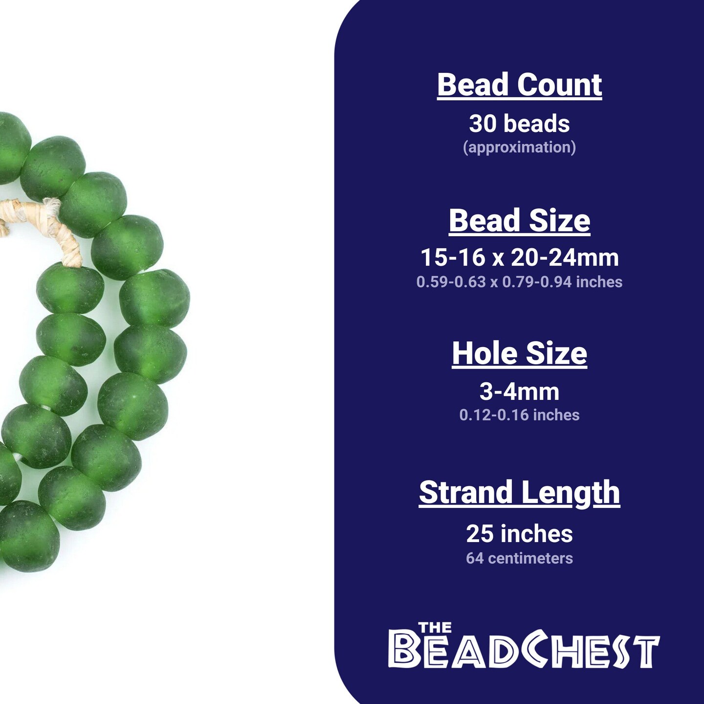 Jumbo Recycled Glass Beads, 21–25mm – African Sea Glass for Wall Hangings, Coffee Table Decor, Shelf Styling, and Home Accents – (Green) – The Bead Chest