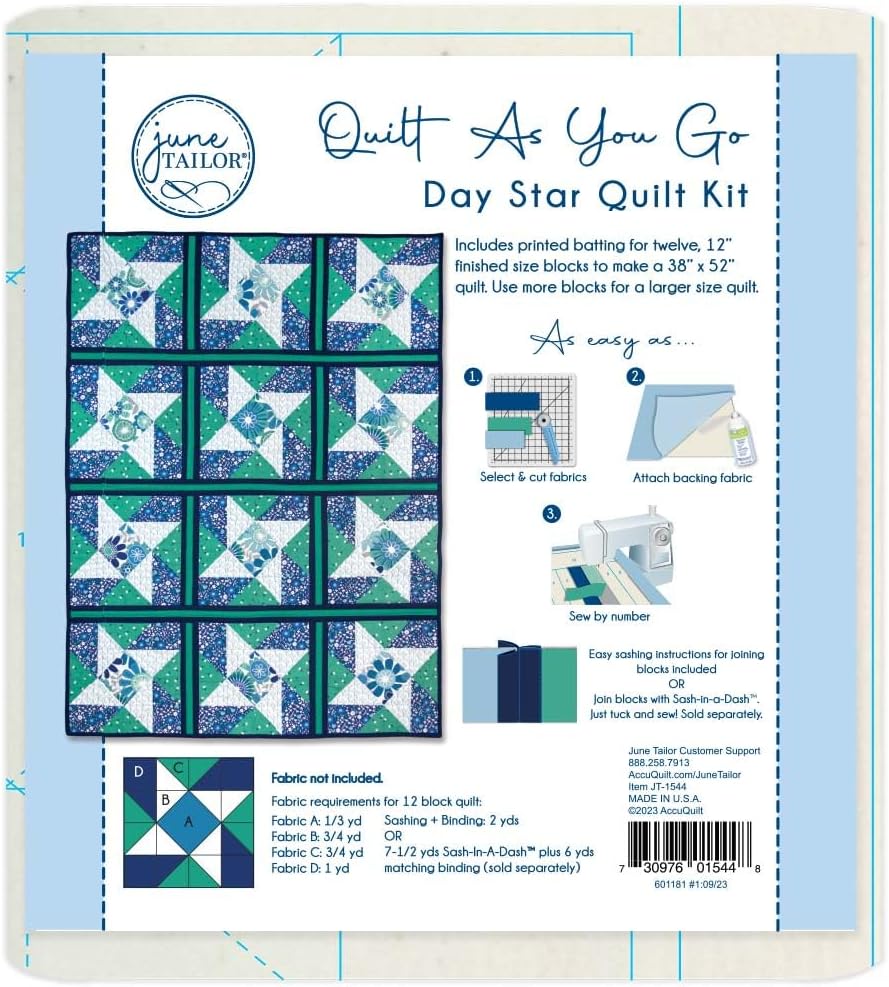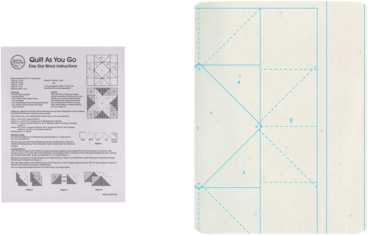 June Tailor Day Star Quilt Block Quilt-As-You-Go Kit (12-Block Pack)