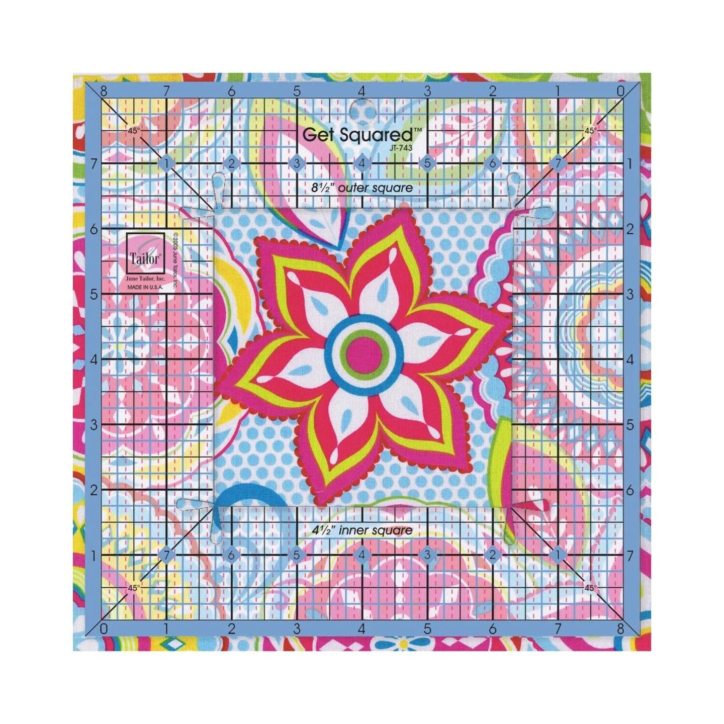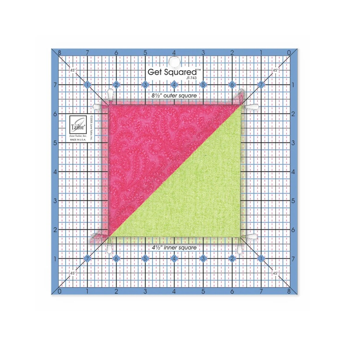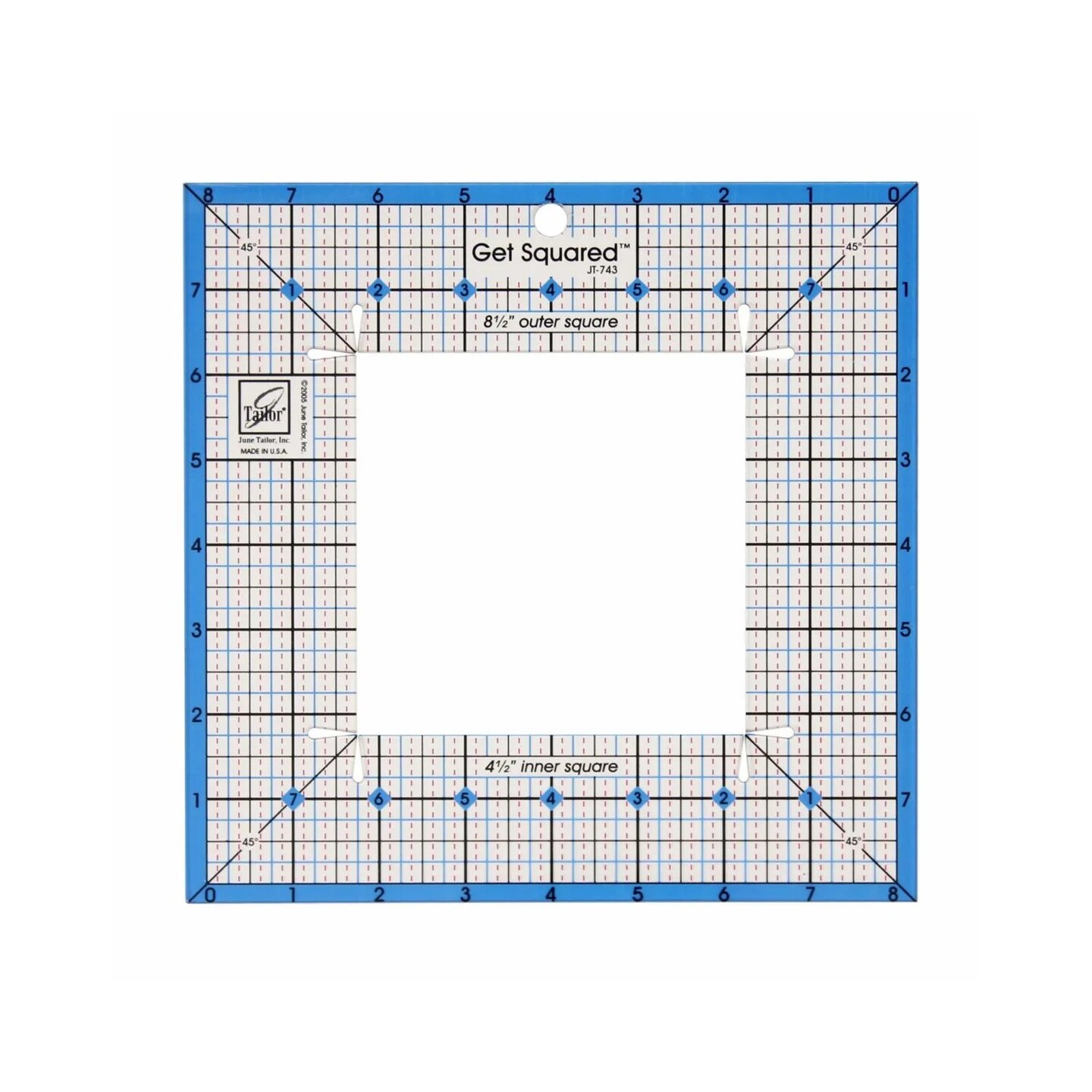 June Tailor Get Squared Ruler 8½" Outer / 4½" Inner – Quilting Square Ruler for Accurate Block Trimming & Fussy Cutting