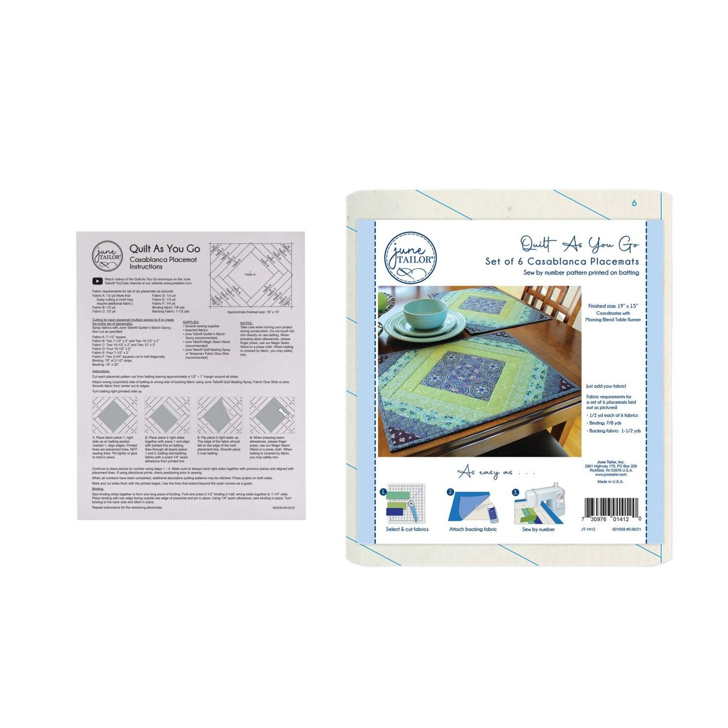June Tailor Quilt As You Go Placemats Patterns Casablanca, Natural, 6 Pcs