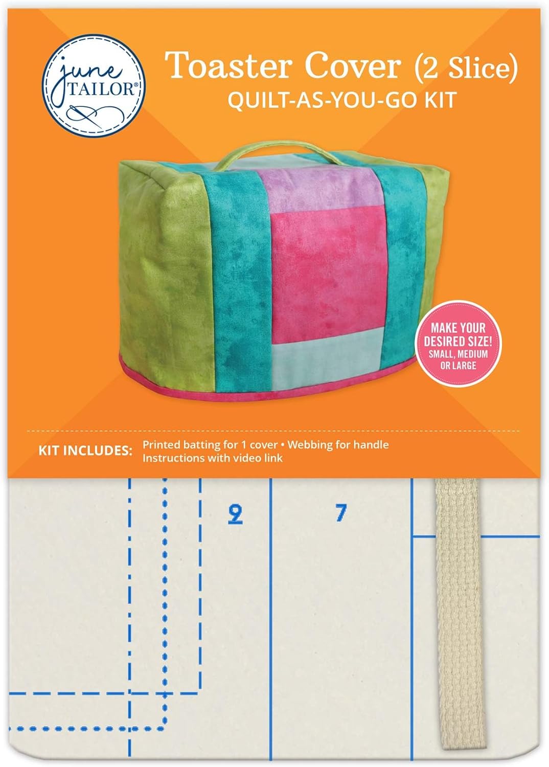 June Tailor Toaster Cover (2 Slice) Quilt-As-You-Go Kit – Easy Sew Kitchen Appliance Cover Kit with Printed Batting, Multiple Sizes