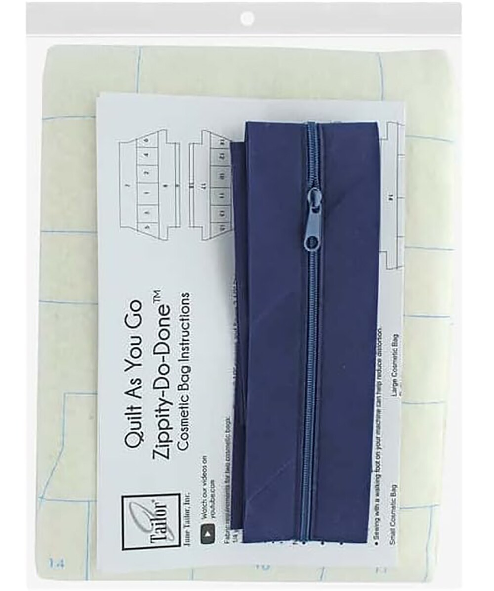 June Tailor Zippity-Do-Done Quilt As You Go Cosmetic Bag Kit, Navy Zipper, 2-Pack