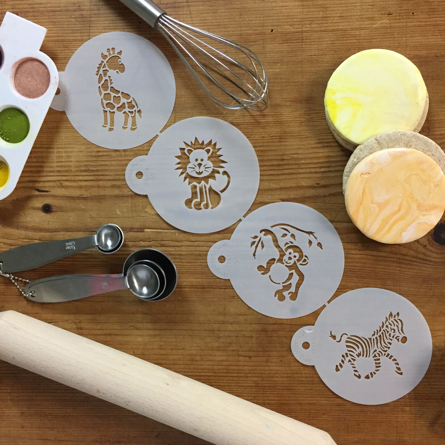 Jungle Animals Cookie Stencil Set | C787 by Designer Stencils | Cookie Decorating Tools | Baking Stencils for Royal Icing, Airbrush, Dusting Powder | Reusable Plastic Food Grade Stencil for Cookies | Easy to Use & Clean Cookie Stencil