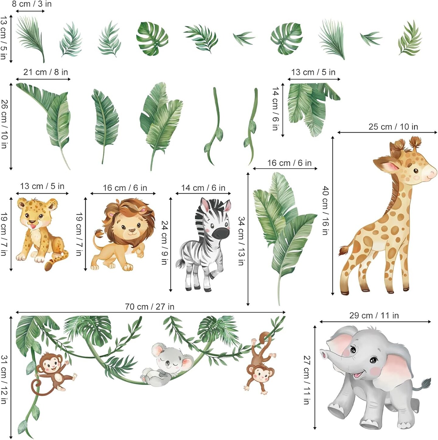 Jungle Animals Tropical Leaves Wall Art Decals(Multi)