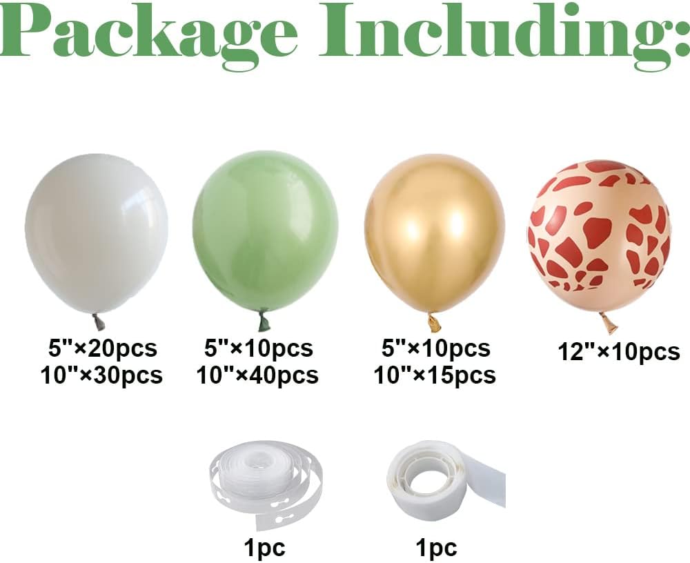 Jungle Safari Balloon Garland Arch Kit 135pcs Sage Green and White Sand Giraffe Animal Print Balloons for Woodland Baby Shower Wild One Boys First Birthday Party Decoration
