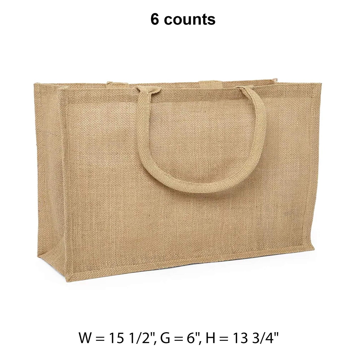 Jute Shopping Bag 15.5" x 6" x 13.75" Large and Durable