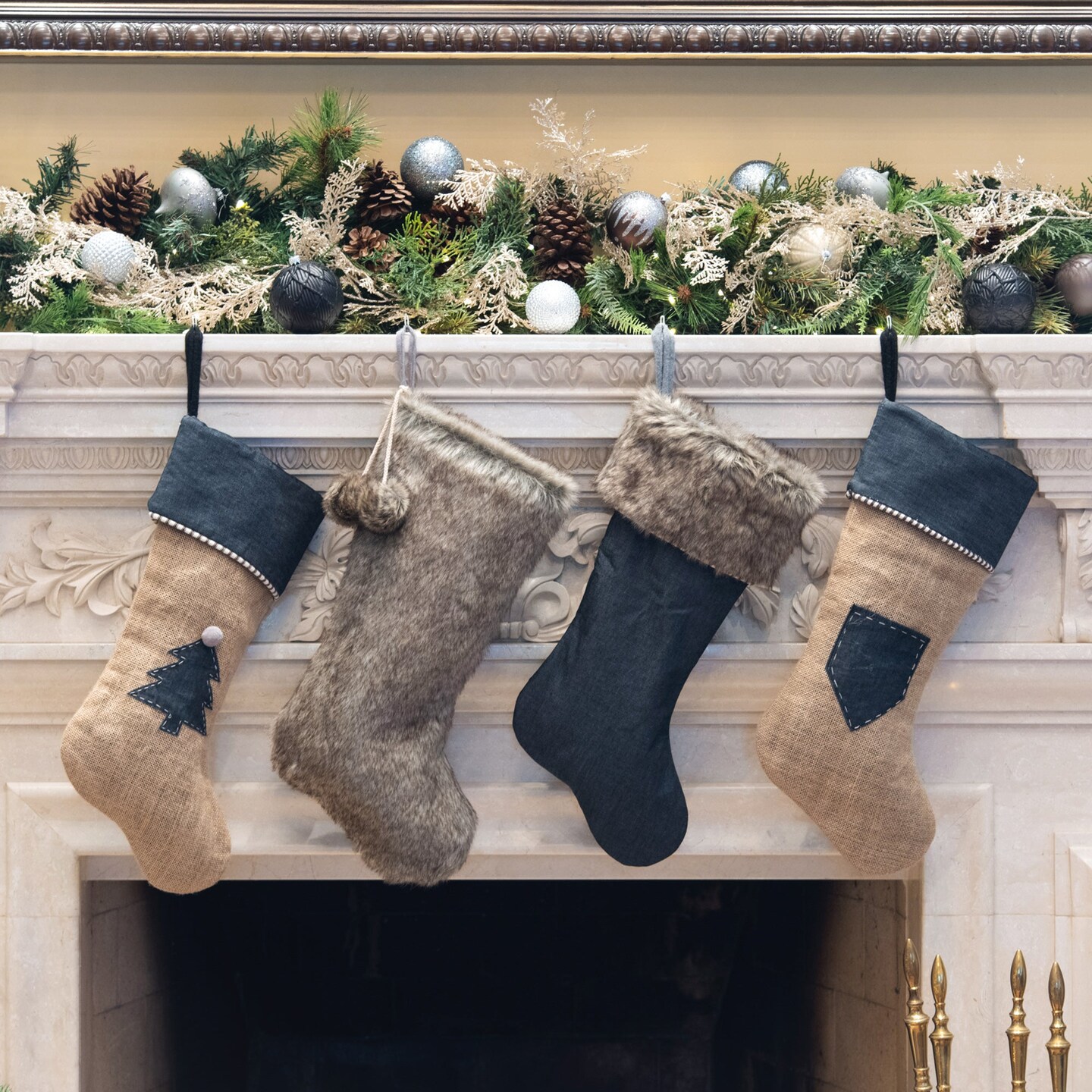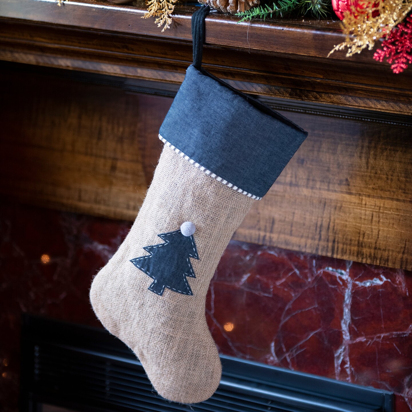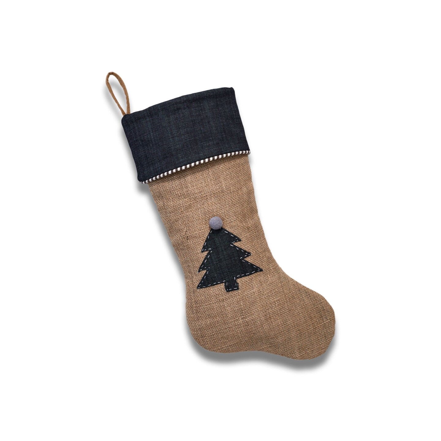 Jute Stocking with Dress Denim Christmas Tree