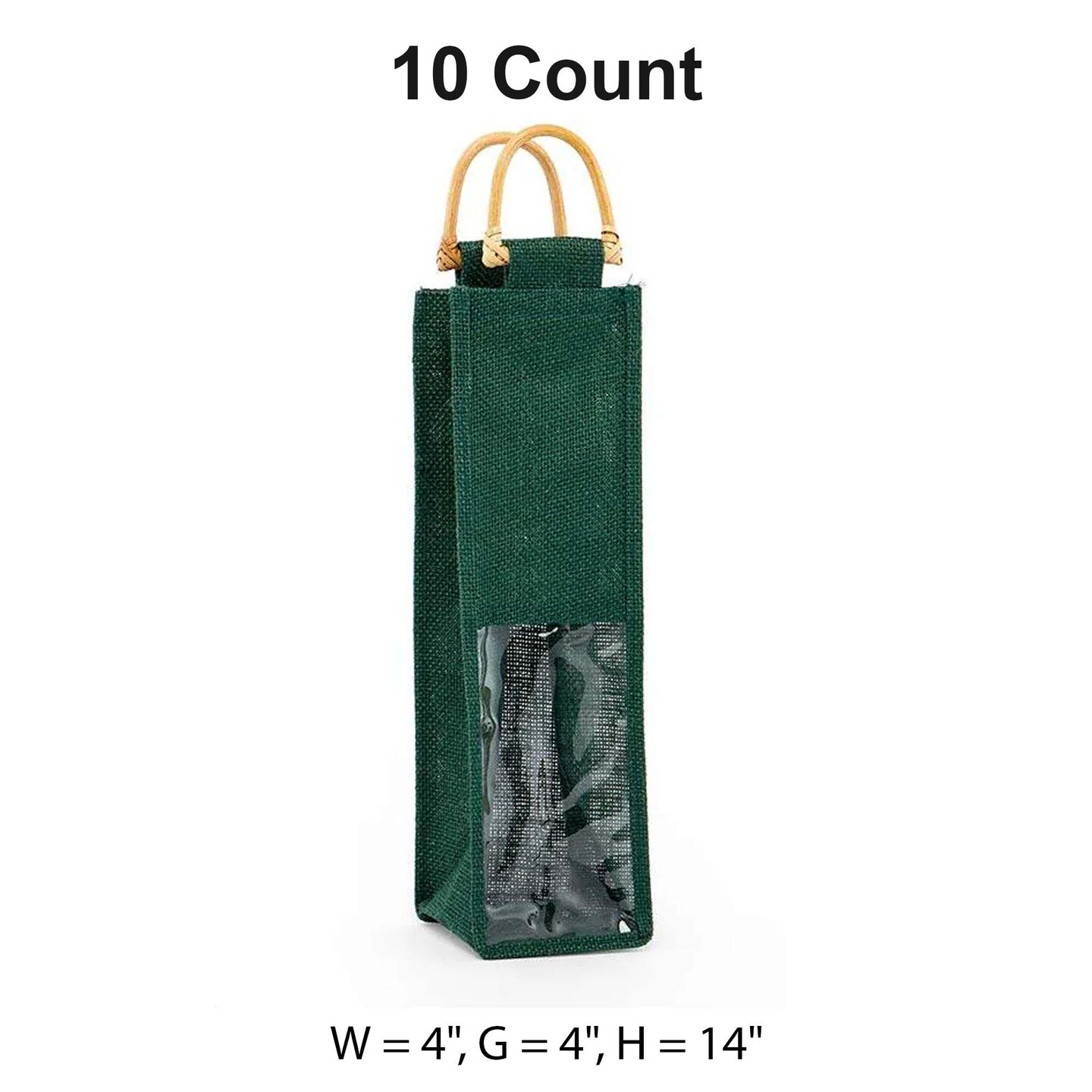 Jute Wine Bag with Wooden Handles 4" x 4" x 14" Durable