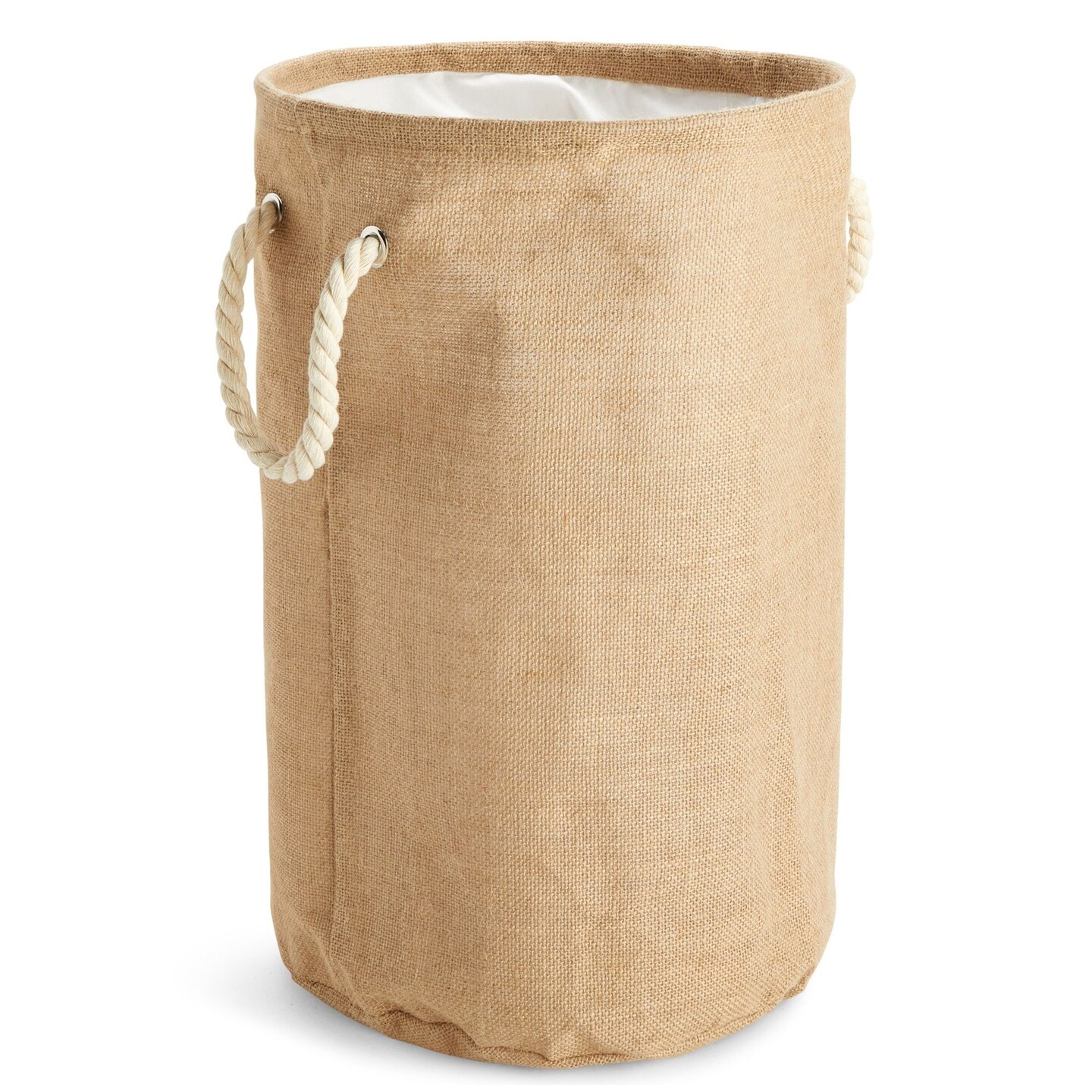 Juvale 22-Inch Collapsible Laundry Basket - Drawstring Hamper with Lid & Rope Handles - Space-Saving Collapsible Round Laundry Hamper - Aesthetic Blanket Basket for Decor - 13.4 x 22 in, Beige