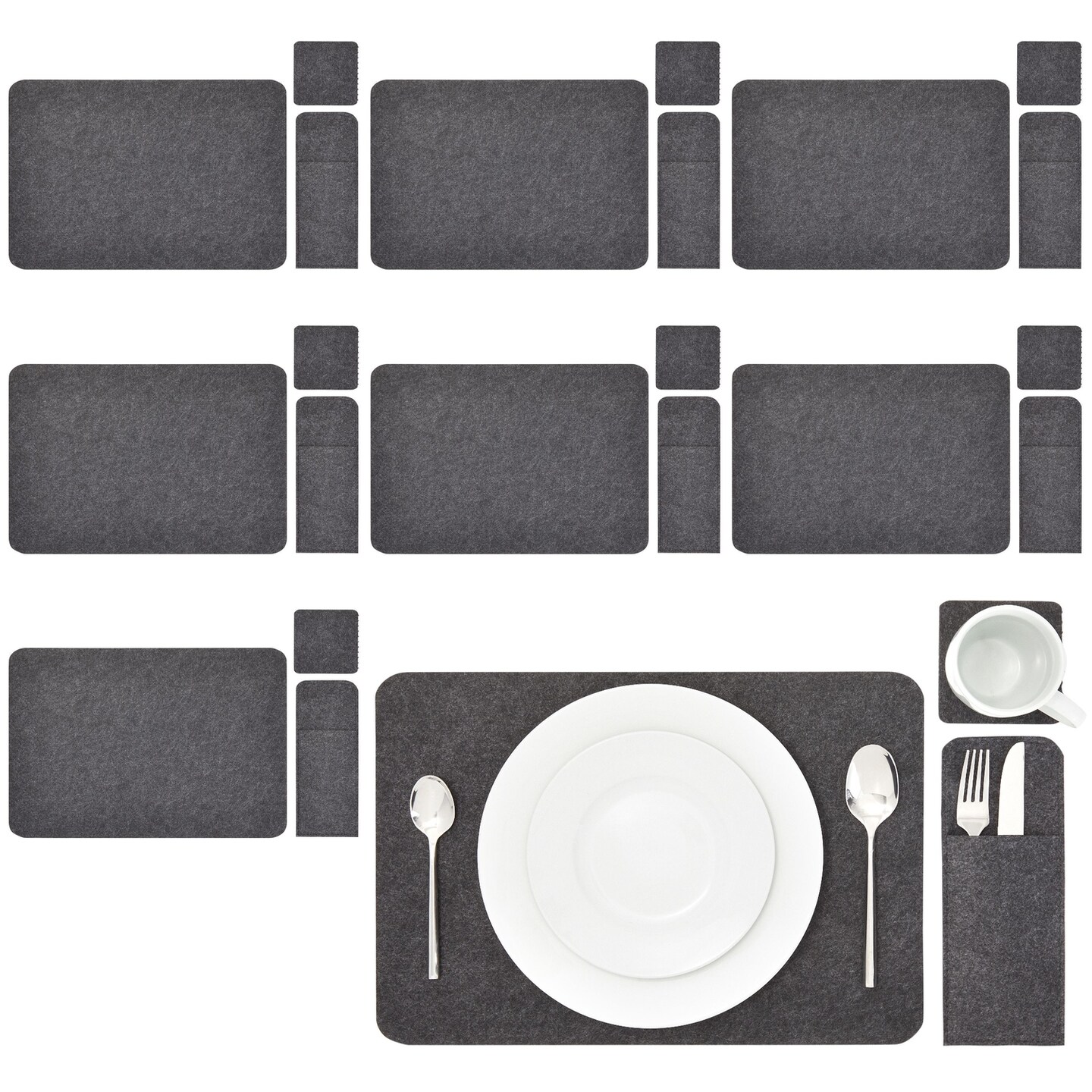 Juvale Felt Table Placemats Set of 8 for Dining Table and Kitchen Decor with Drink Coasters and Cutlery Pouches (Gray, 24 Pieces)