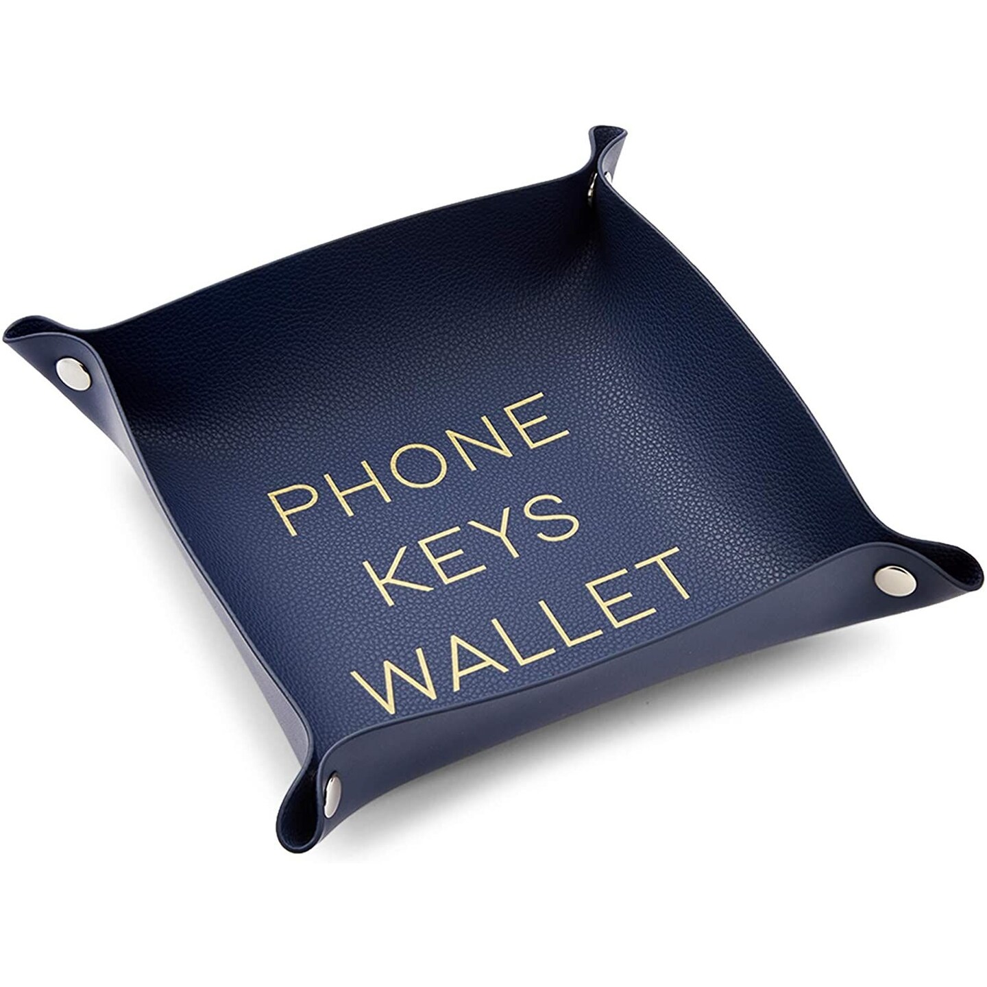 Juvale Leather Catchall Dish, Valet Tray, Phone Wallet Keys Holder, Entryway Basket for Keys, Organizer Tray for Entryway, Nightstand and Desk, Navy Blue, 6.9 x 6.9 x 2.2 in