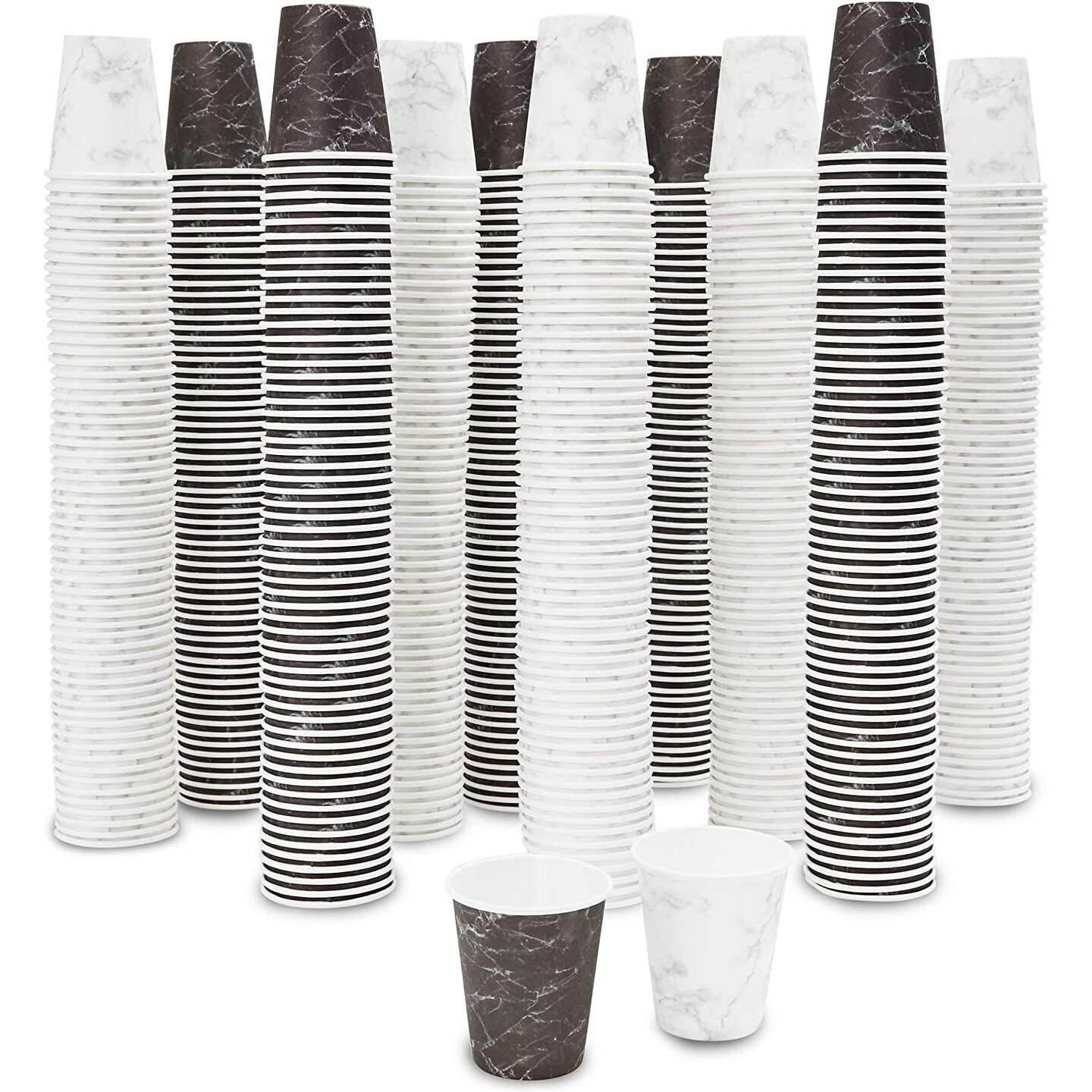 Juvale Marble Bathroom Cups - Leak-Resistant Mouthwash Cup - Compact 3 Fl Oz Coffee & Espresso Mug - Disposable Paper Drinkware - Pack of 600, Black & White
