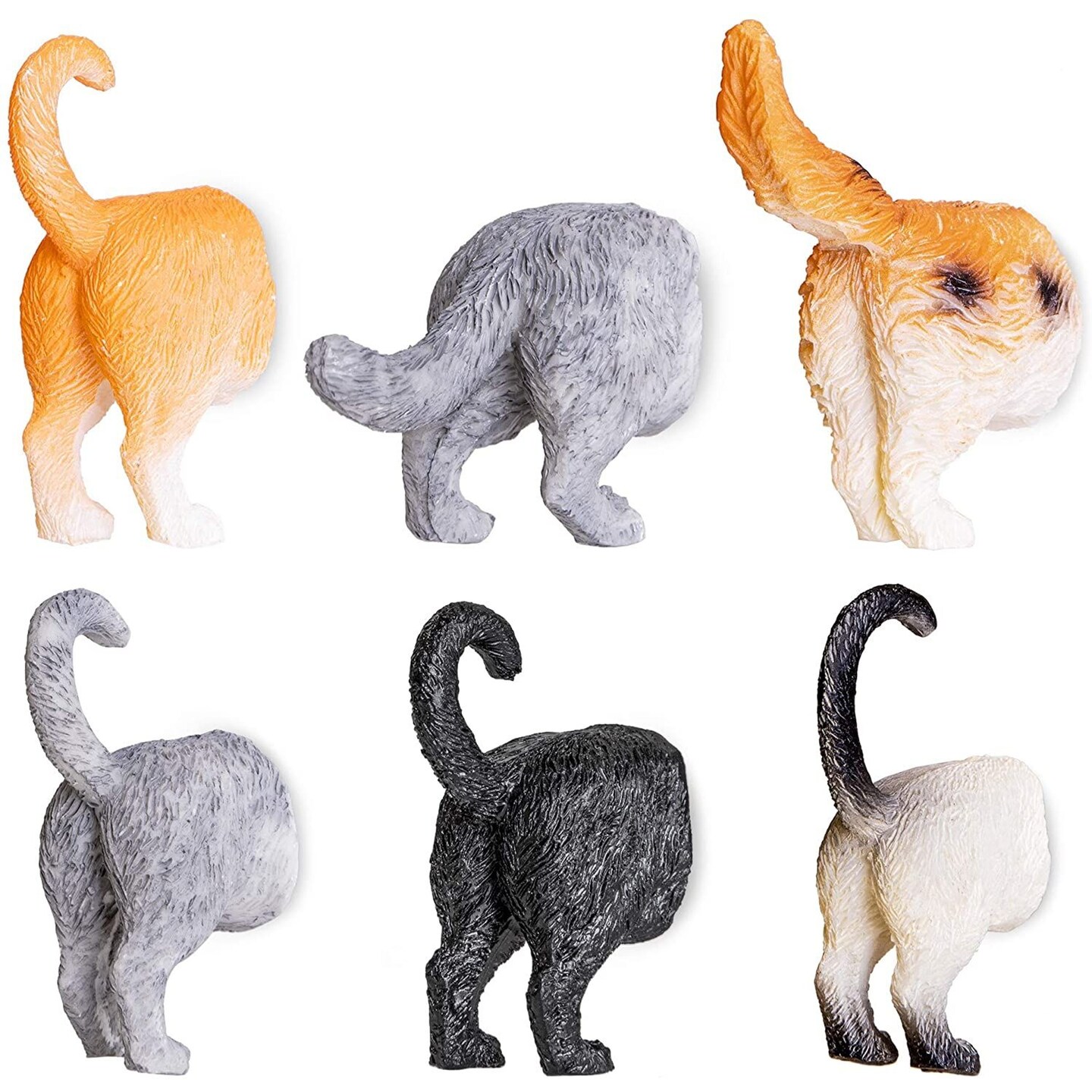 Juvale Refrigerator Magnet Set - Pack of 6 Multi-Color Plastic - Cat Butt Designs - Cute Fridge Magnets for Kitchen & Office Whiteboard - Funny Animal Decor