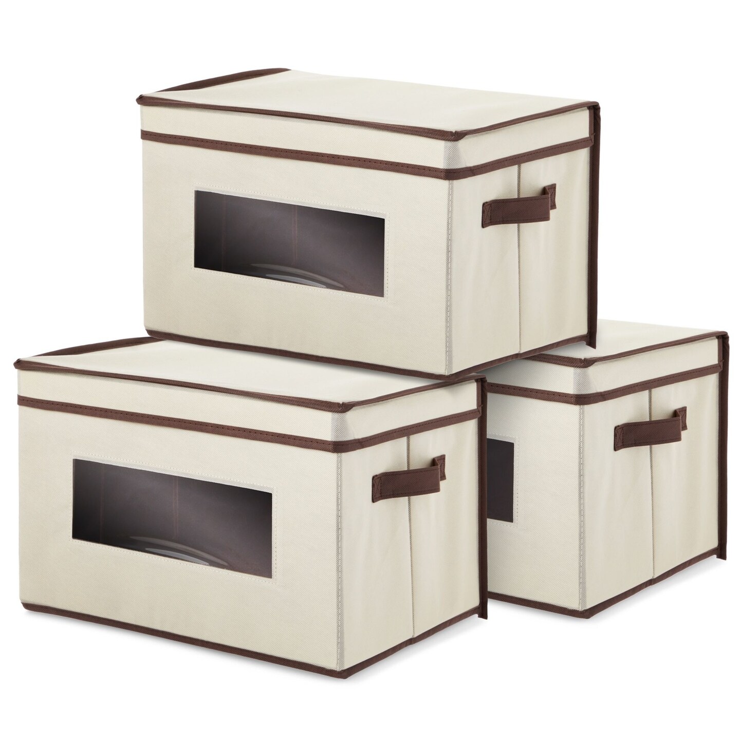 Juvale Stackable Fabric Storage Bins with Lids - 16.2 x 10 x 12 in Cream - Foldable Cardboard Bins With Handles & Front Window - Sturdy Stackable Storage Cubes for Closet & Dorm