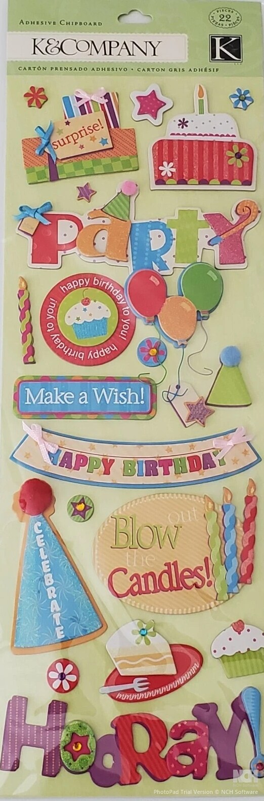 K & Company General Birthday Adhesive Chipboard Dimensional Stickers