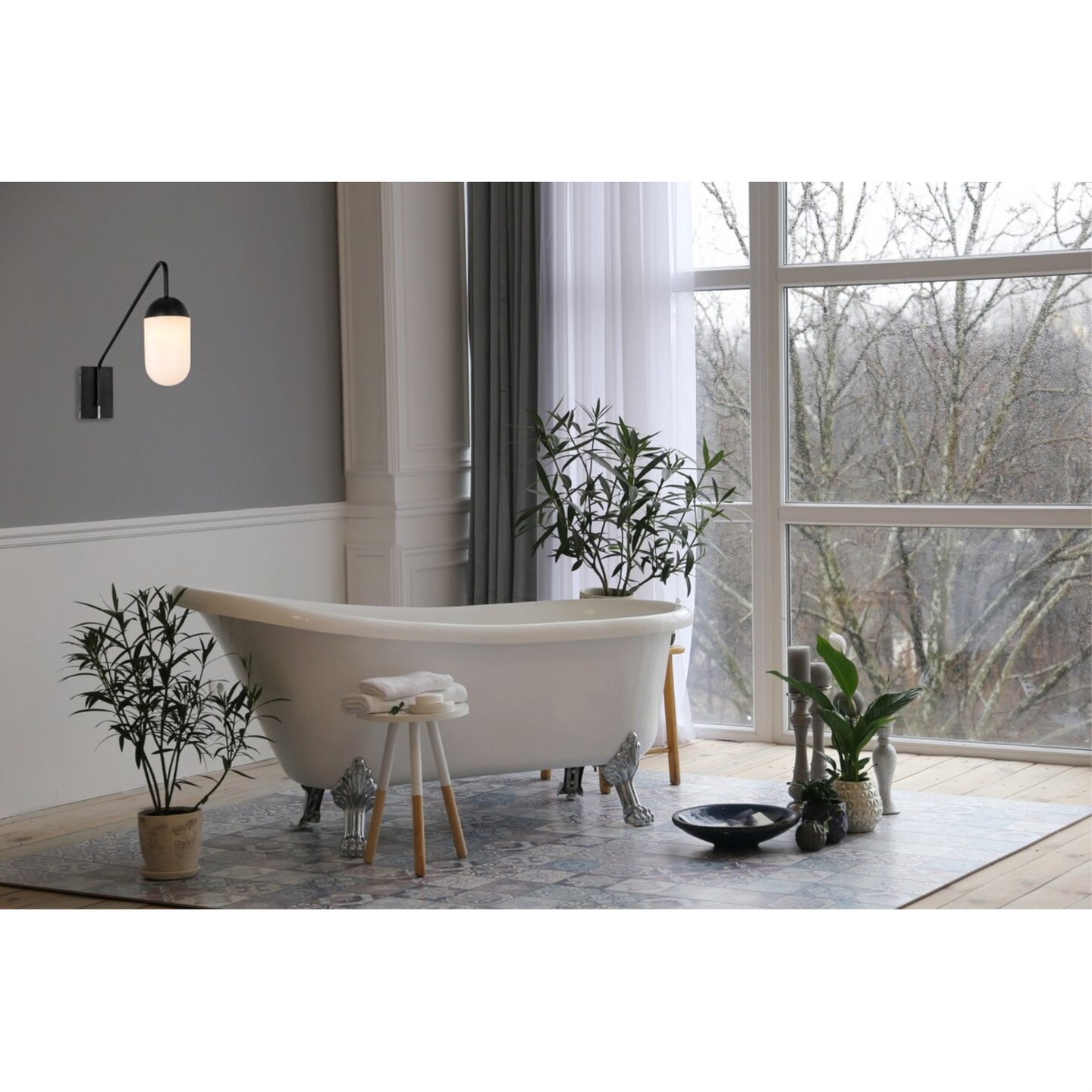 Kace 1 light Black and frosted white glass wall sconce