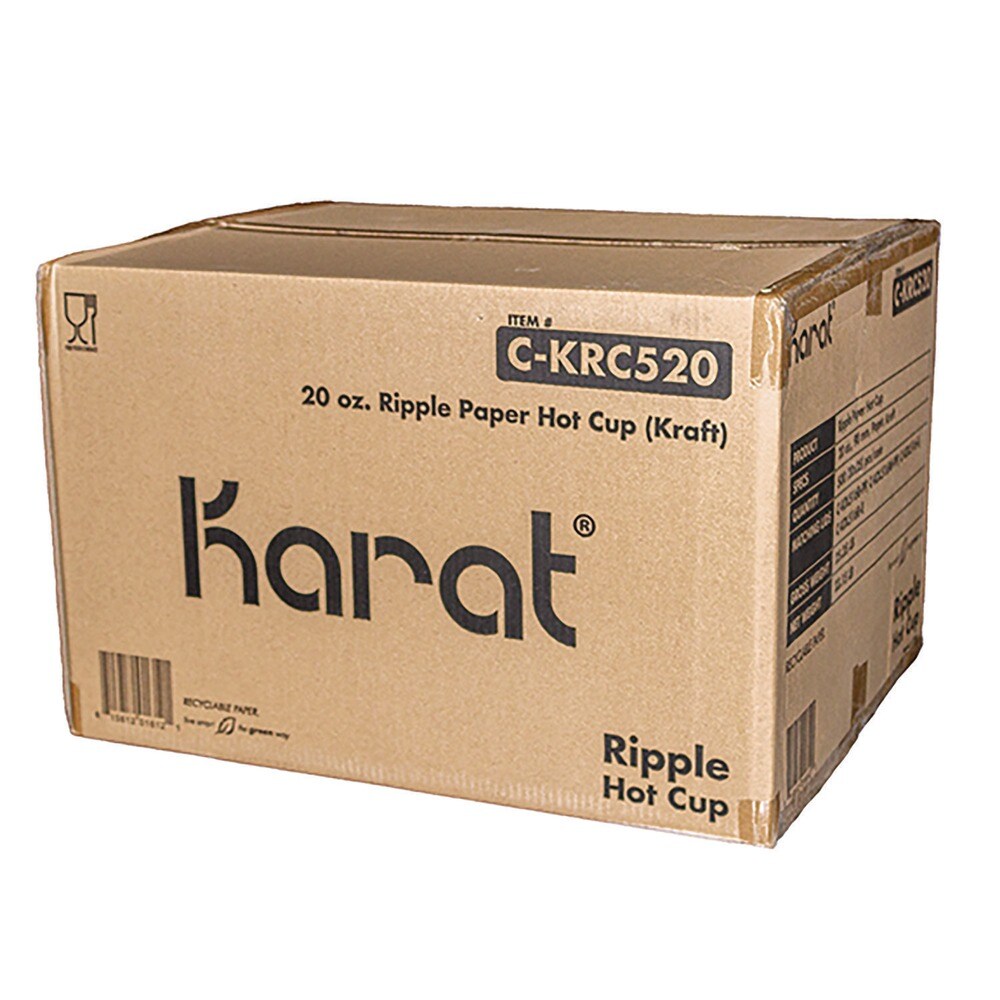 Karat 20 oz Ripple Hot Cups - Kraft/White (500/Carton)