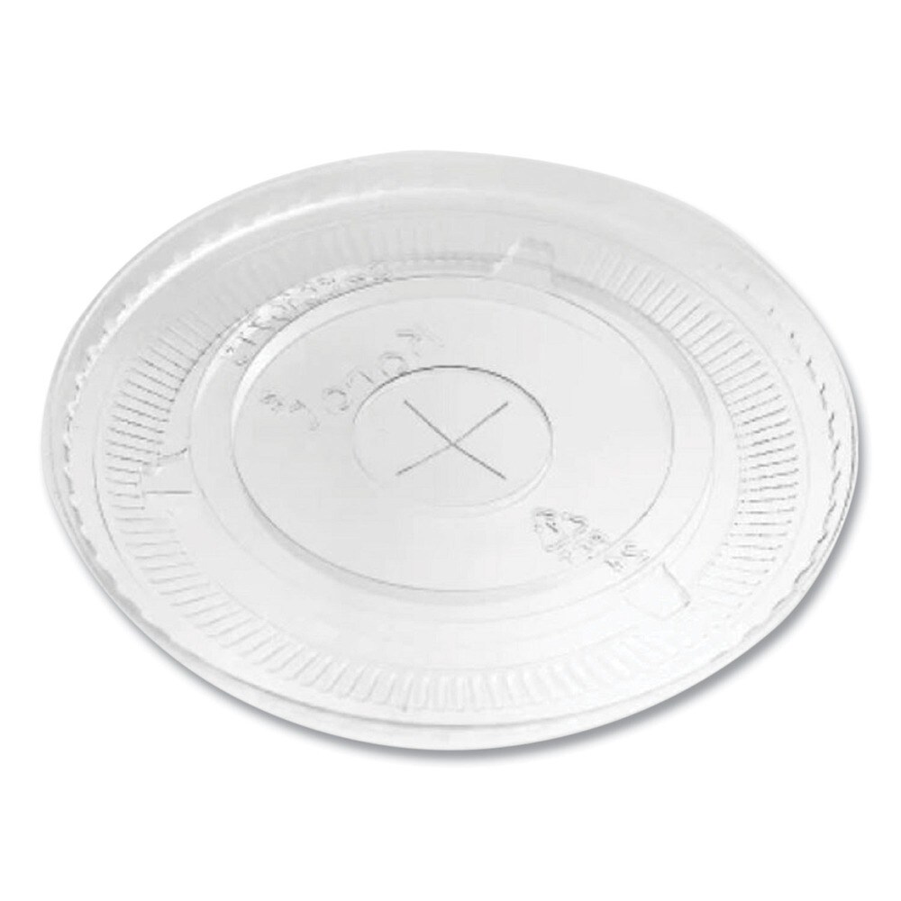 Karat Plastic Flat PET Lids with Straw Slot Fits 32 oz. Cold Cups - Clear (500/Carton)