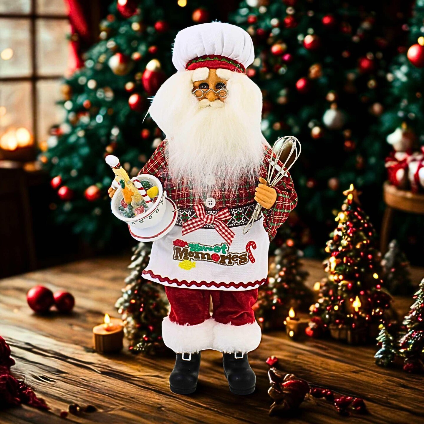 Karen Didion 13.0 Inch Kitchen Santa Christmas Figurine , Lightweight Christmas Decor Chef Santa