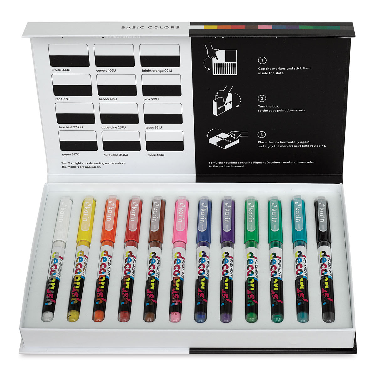 Karin Pigment Decobrush Markers - Set of 12, Basic Colors