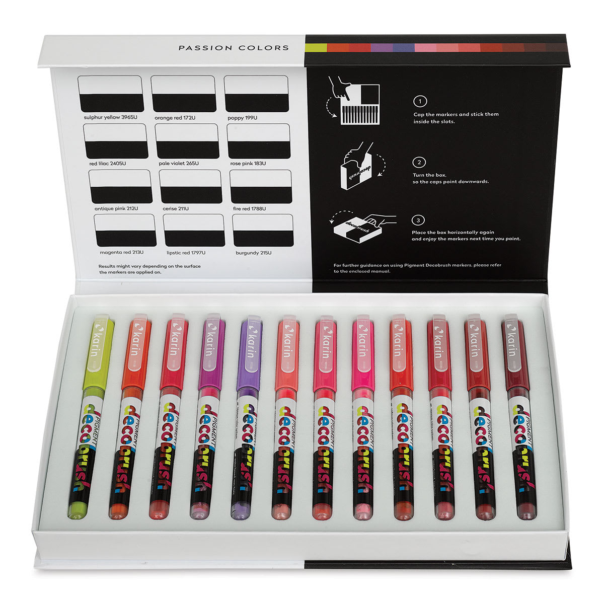 Karin Pigment Decobrush Markers - Set of 12, Passion Colors