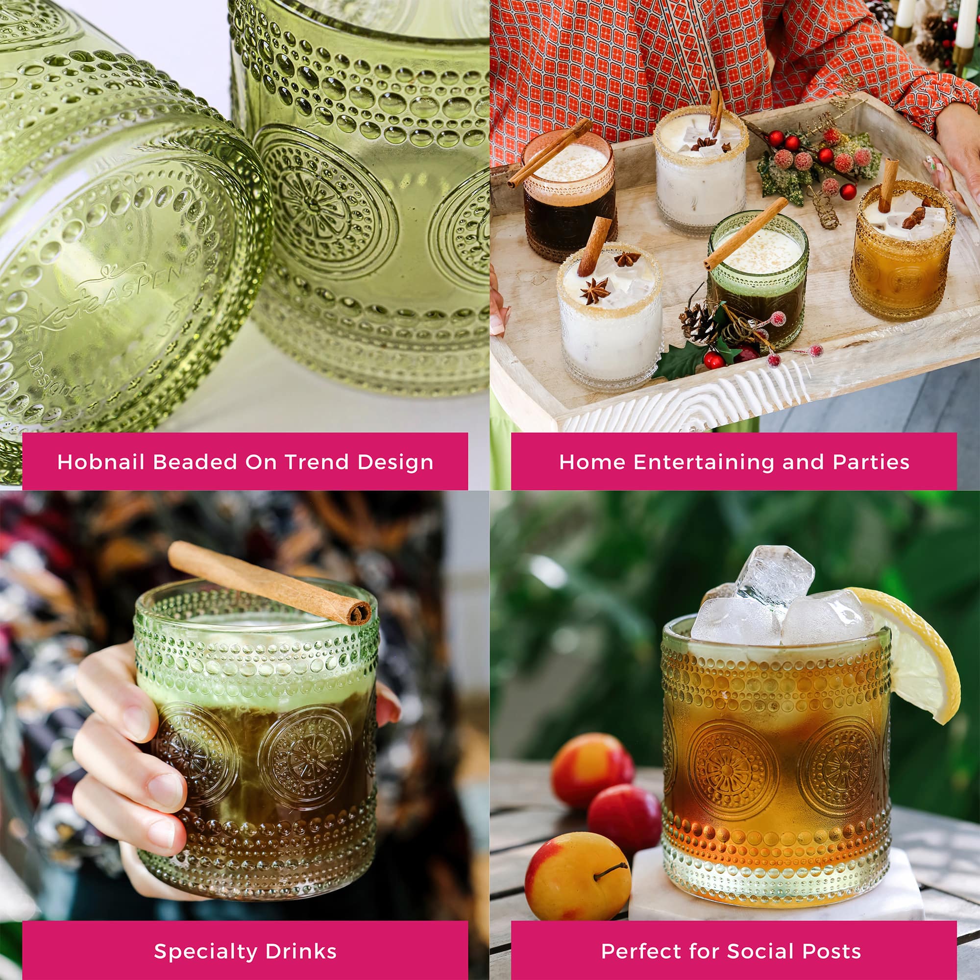 Kate Aspen® 10oz. Hobnail Beaded Floral Green Drinking Glasses, 6ct.